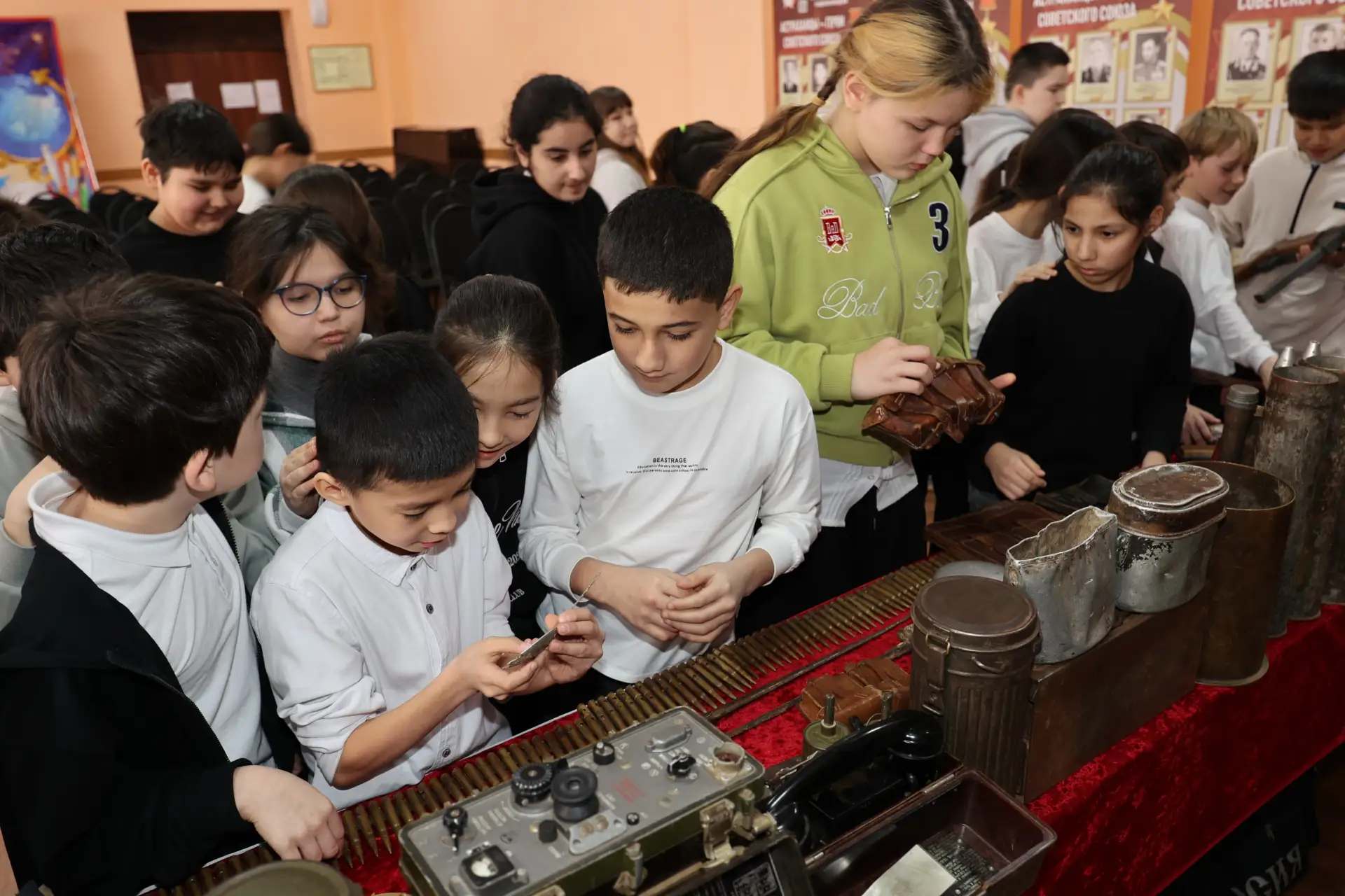 Настоящим погружением в историю стали интерактивные выставки. Школьники увидели не только фотографии военных лет, но и редкие артефакты, поднятые поисковиками: образцы оружия, предметы экипировки, а также копии наград разных эпох — от медалей Российской Империи до современных орденов.