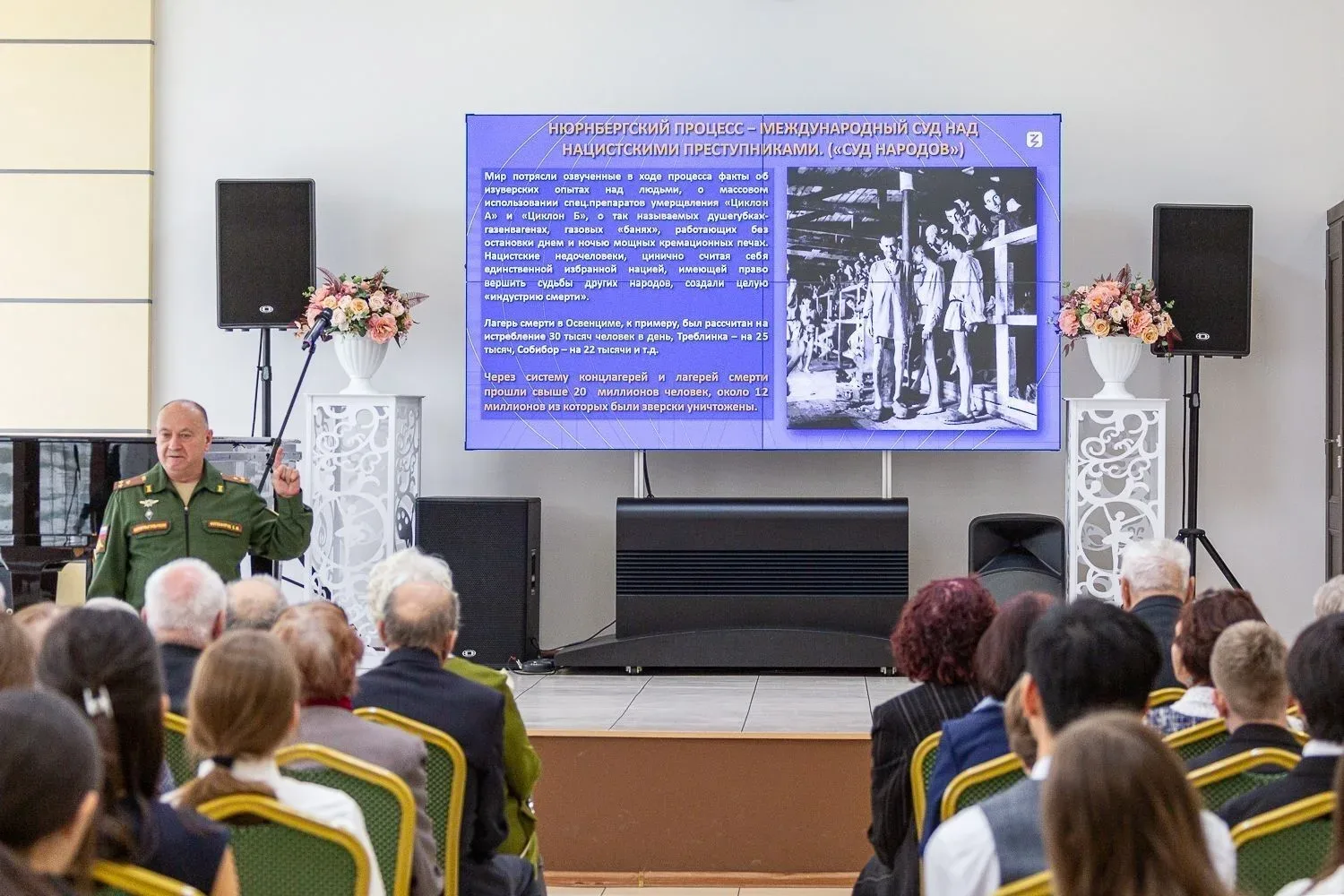 Перед началом лекции к студентам обратилась проректор по молодёжной политике УрГУПС Елена Романова, а руководитель штаба свердловского отделения Бессмертного полка России Сергей Боровиков отметил: «Сегодня, когда предпринимаются попытки переписать историю, обесценить подвиг нашего народа, такие лекции приобретают особое значение. Мы обязаны передать правду о войне молодому поколению. Правду о том, какой ценой досталась Победа, о зверствах нацистов на нашей земле. «Бессмертный полк» — это не просто акция, это наша память, наша боль, наша гордость. И пока мы помним — мы непобедимы».