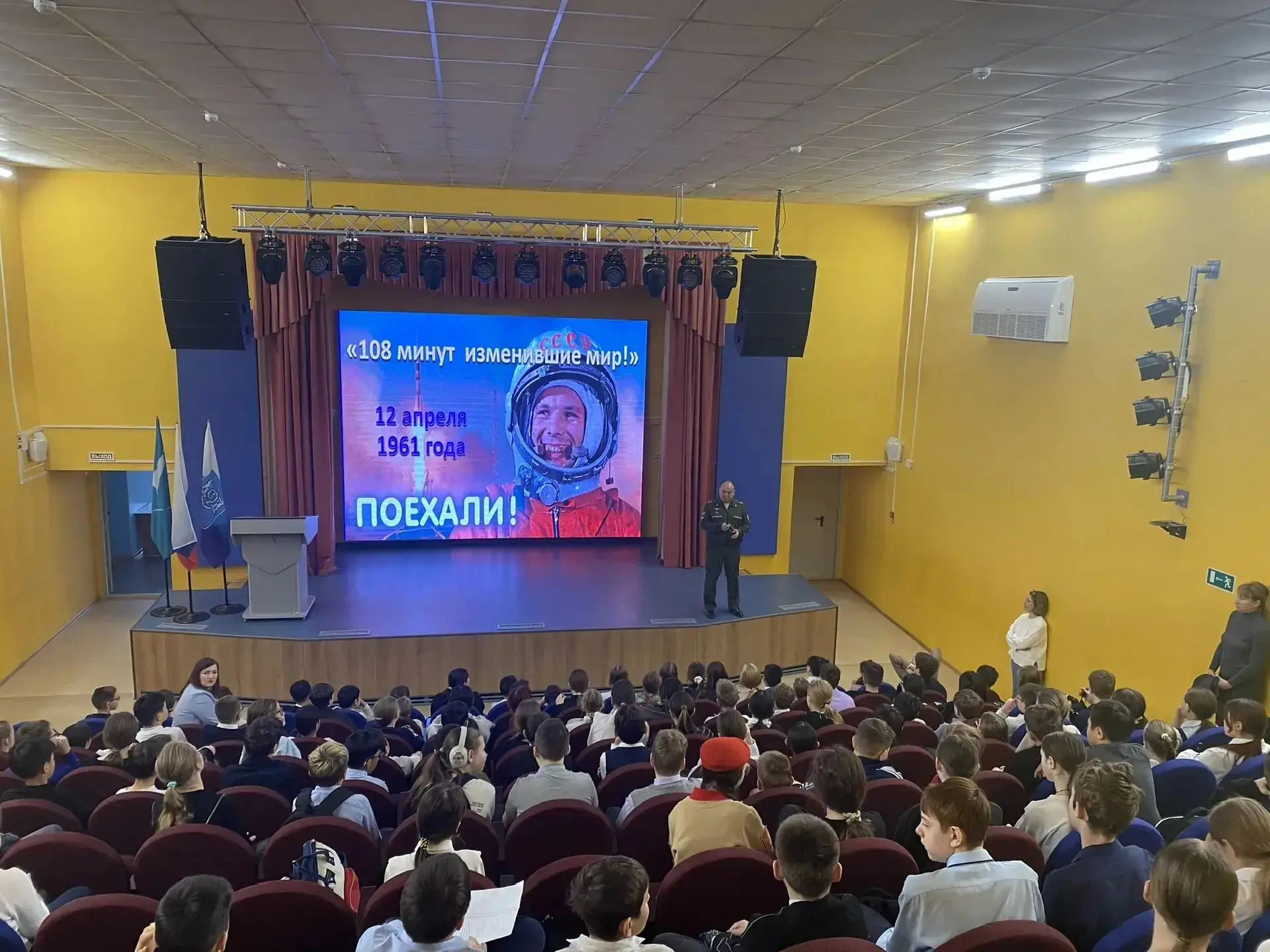 Более 150 учеников школы №22 города Южно-Сахалинска собрались на встречу с руководителем штаба регионального отделения Бессмертного полка России в Сахалинской области Андреем Фугенфировым. На уроке мужества «108 минут, которые изменили мир!» ребята узнали о том, как с космодрома «Байконур» 12 апреля 1961 года Юрий Гагарин стартовал на корабле «Восток-1», вышел на околоземную орбиту и совершил один виток вокруг Земли. Также не забыли про основоположников всей космонавтики, великих русских и советских учёных: Константина Циолковского, Фридриха Цандера и Сергея Королёва.