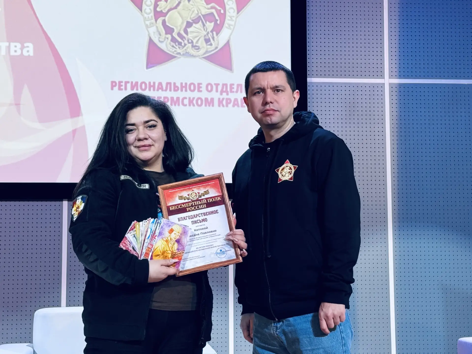 Праздничные послания к Дню защитника Отечества доставила в зону проведения специальной военной операции Оксана Котова, член штаба пермского отделения Бессмертного полка России. Наша однополчанка с 2022 года занимается сбором и доставкой гуманитарной помощи бойцам и гражданскому населению исторических территорий с «Гуманитарным Центром Прикамья», а также помогает в поиске пропавших людей с поисковым отрядом им. Ирины Бухановой.