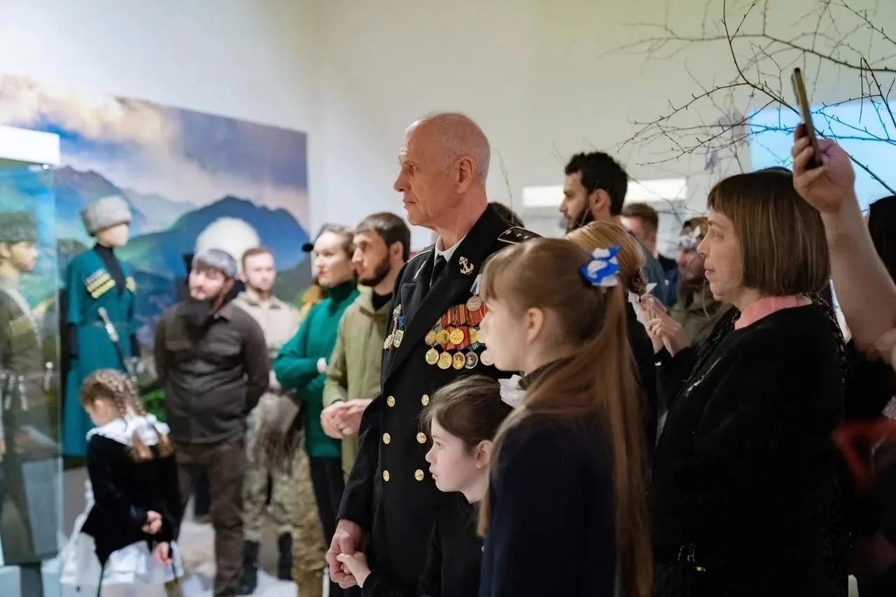 В Пермском крае в этот день открылась уникальная выставка «Знание. Герои», подготовленная Российским обществом «Знание». Экспозиция, разместившаяся в стенах Исторического парка «Россия – моя история», рассказывает о защитниках Отечества через графические новеллы и иличные вещи участников СВО. Первыми посетителями стали члены регионального штаба Бессмертного полка России Руслан Шамсутдинов и Даниил Степанов.