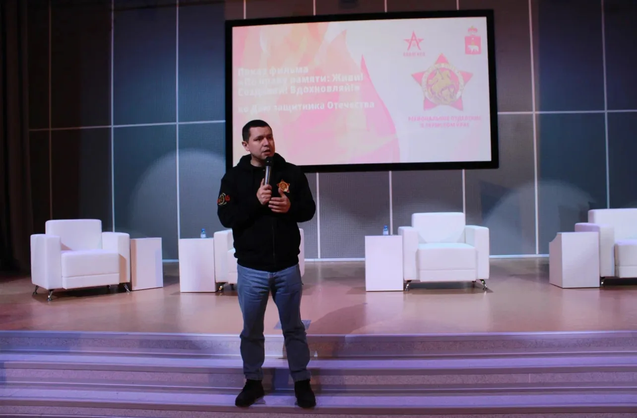 В Кемерово гостем стал защитник страны, которого теперь знает вся страна – герой фильма и победитель одноименного конкурса Движения Андрей Потапов. Перед показом фильма участники познакомились с работами своего земляка, которые он создал в период участия в специальной военной операции и пребывания в госпиталях после ранения. Затем на экране зрители увидели увидели, как ветеран СВО и самодеятельный художник отразил будничную жизнь военных, моменты службы и быта в своих рисунках, позволив зрителям прочувствовать дух и настроение фронта, истинный патриотизм и любовь к Родине.