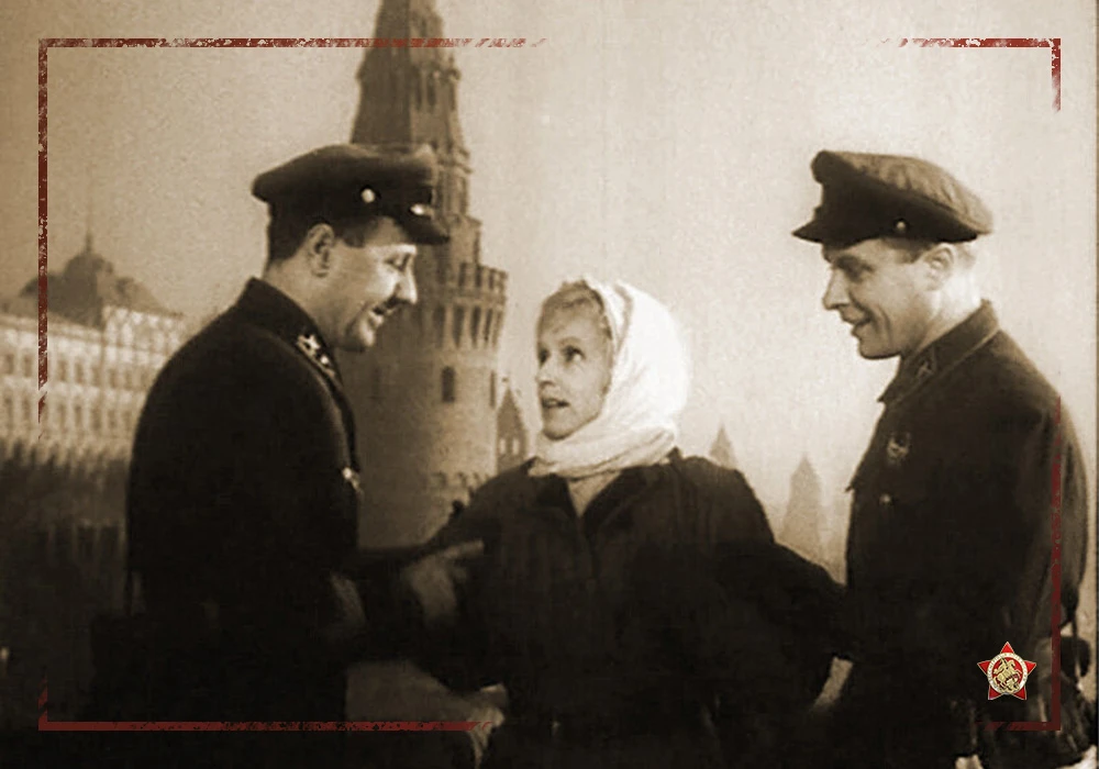 А началось все с того, что лейтенанты Паша и Вася за свои геройские подвиги получили посылку из Москвы, в которой нарисованный на коробке призыв «убивайте всех фашистов» был подкреплен махоркой и бутылкой коньяка, а также фотографией той самой "тети Вари" - звезды сталинского кино Мариной Ладыниной, по совместительству жены режиссёра Ивана Пырьева и бывшей жены Ивана Любезнова, который играл лейтенанта Пашу и вновь, уже по фильму, проиграл любовный бой за женское сердце другу Васе в исполнении легендарного командарма Щорса актёра Евгения Самойлова. А потом Вася и Варя обещали друг другу встретиться в Москве в 6 часов вечера после войны, да так бы и нарушила Варя свою клятву, став зенитчицей и погибнув при обстреле эшелона немецкими «мессерами», если бы не режиссёр Пырьев, в корне переделавший сценарий умершего в начале 1944 года Виктора Гусева и своим счастливым финалом подаривший людям надежду, что после войны уж точно будет все хорошо. Иван Пырьев лучше знал, что людям в тяжёлое время - а таковое в России всегда, за исключением стабильно редких исключений - не окопная правда нужна, а чебурашки, буратины и прочее простоквашино, и 26 миллионов зрителей, посмотревших фильм в 1944-1945 годах, тому доказательство.