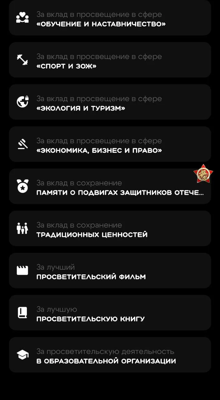 2. В приложении для голосования выберите номинацию «За вклад в сохранение памяти о подвигах защитников Отечества» и категорию «Проект».