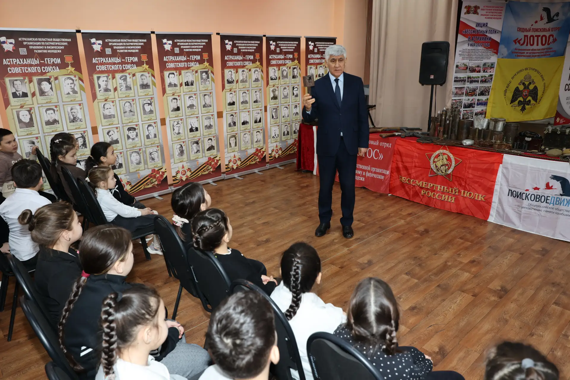 Перед школьниками выступили ветераны боевых действий и участники специальной военной операции, а руководитель астраханского штаба Бессмертного полка России Искандарбек Даиров рассказал подробнее о том, как каким был путь наших предков к Победе. Ребятам показали уникальную кинохронику времен Великой Отечественной и видеоматериалы о героях наших дней. Особый отклик нашло обращение Бессмертного полка России к молодежи – призыв сохранять правду о войне и быть достойными наследниками Победителей.