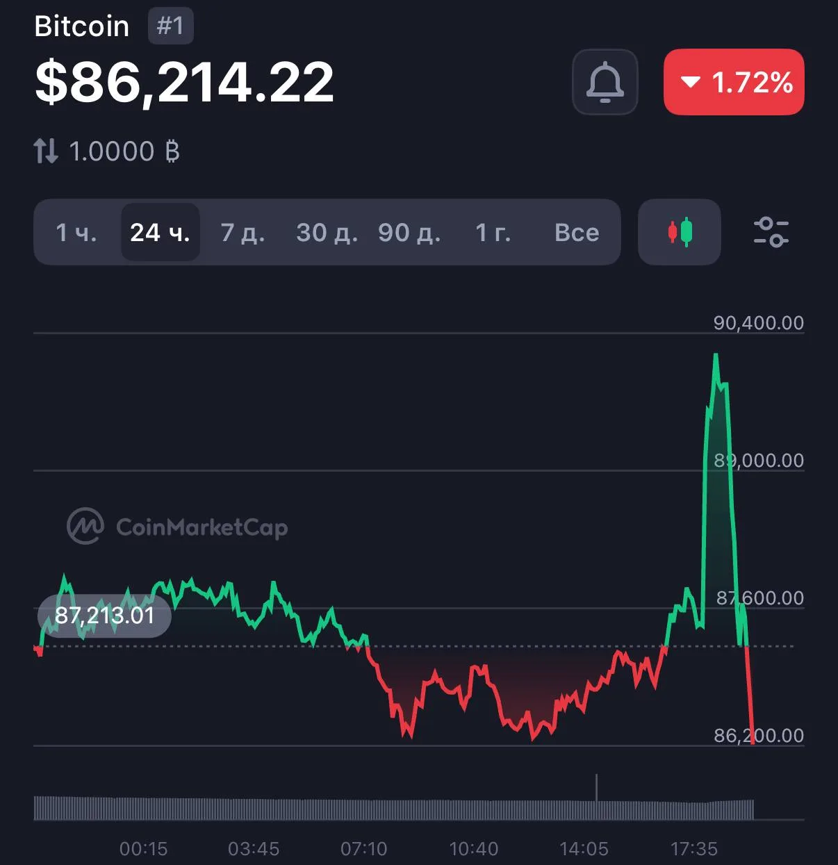 Биткоин за один день показал невероятный рост до $90 000, и в этот же день провалился до $86 000.