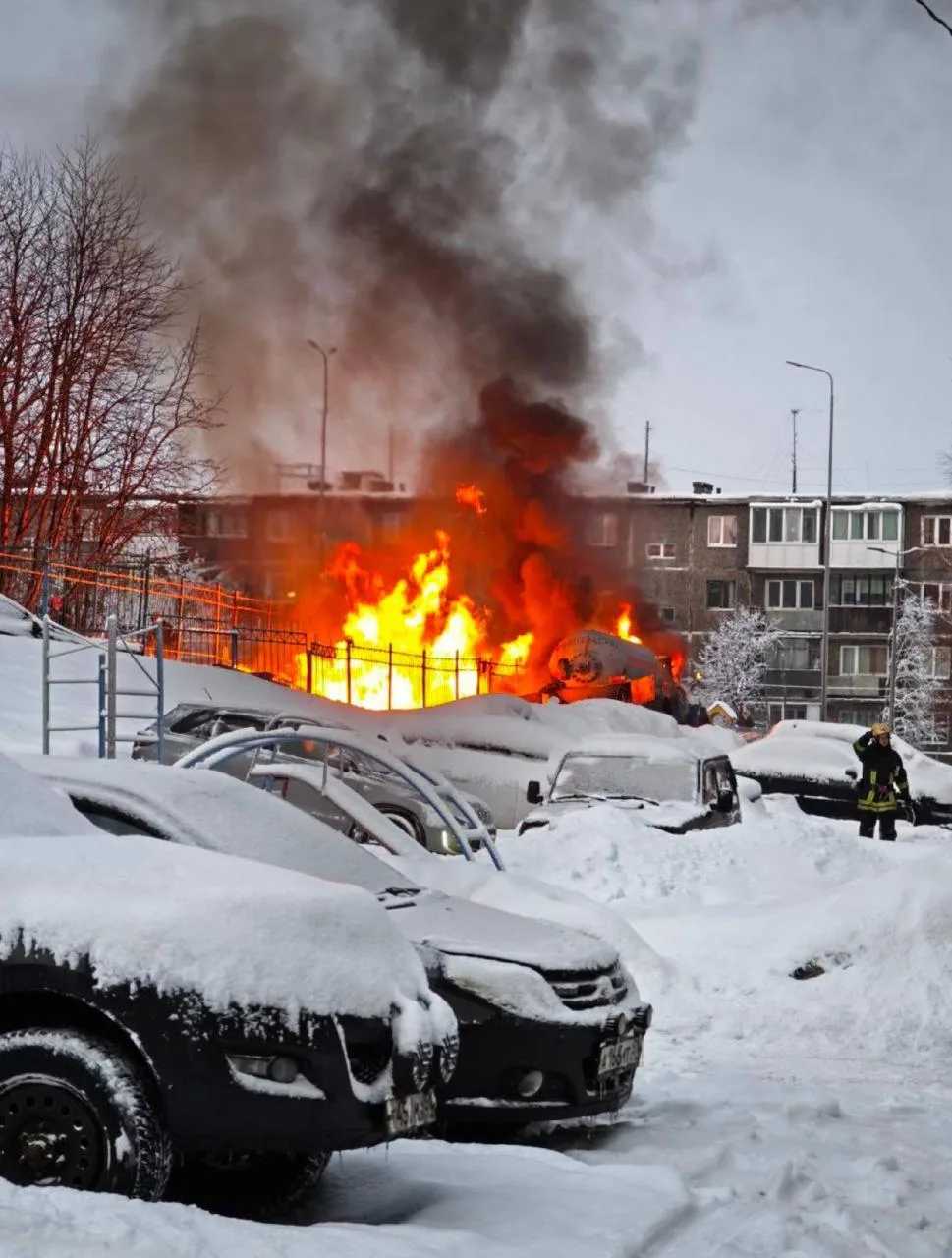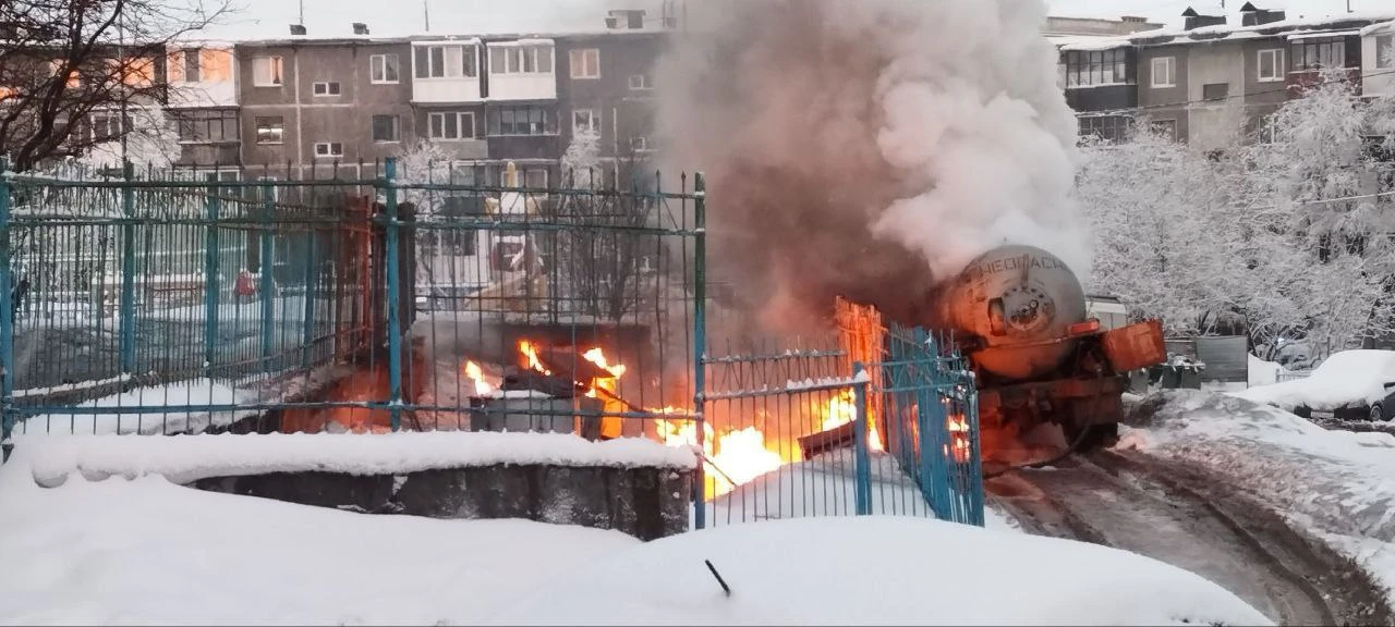 Сегодня около 10 часов между домами № 18 и 22 по ул. Аскольдовцев г. Мурманска произошло возгорание газгольдера.
