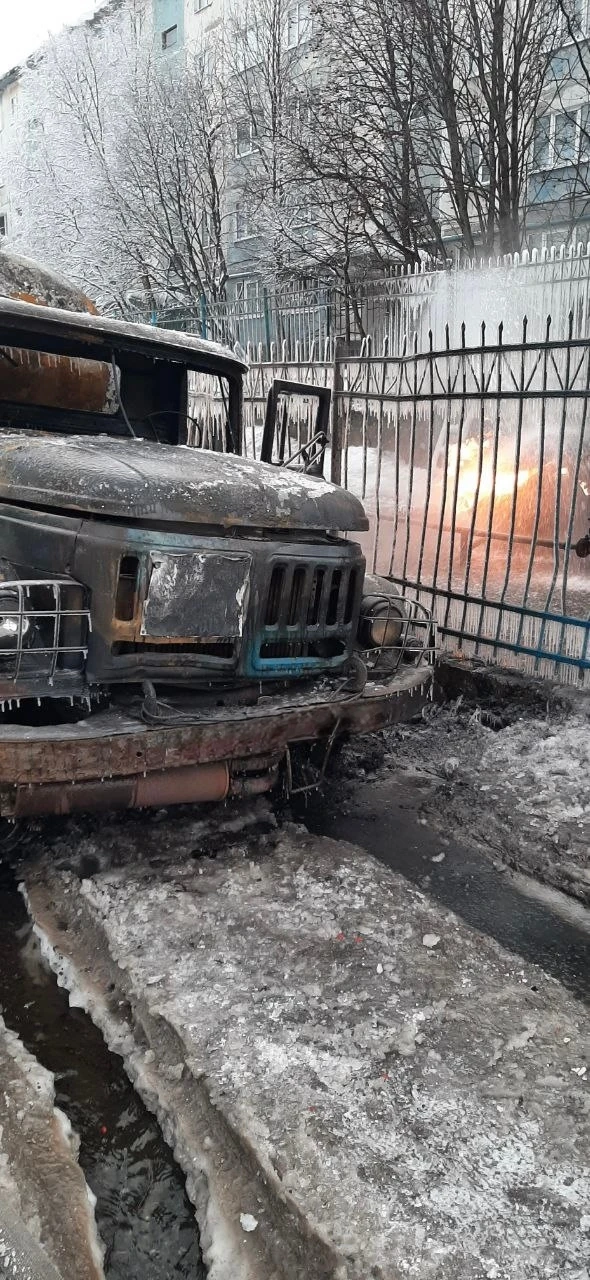 В результате пожара автомобиль газовой службы сгорел полностью, газгольдер поврежден огнём на площади 4 кв.м., газопровод на площади 8 погонных метров.