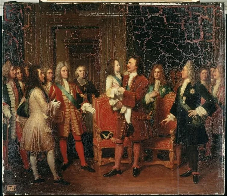 Во время своего визита царь Петр I внезапно поднял на руки молодого французского короля, который был еще ребенком.