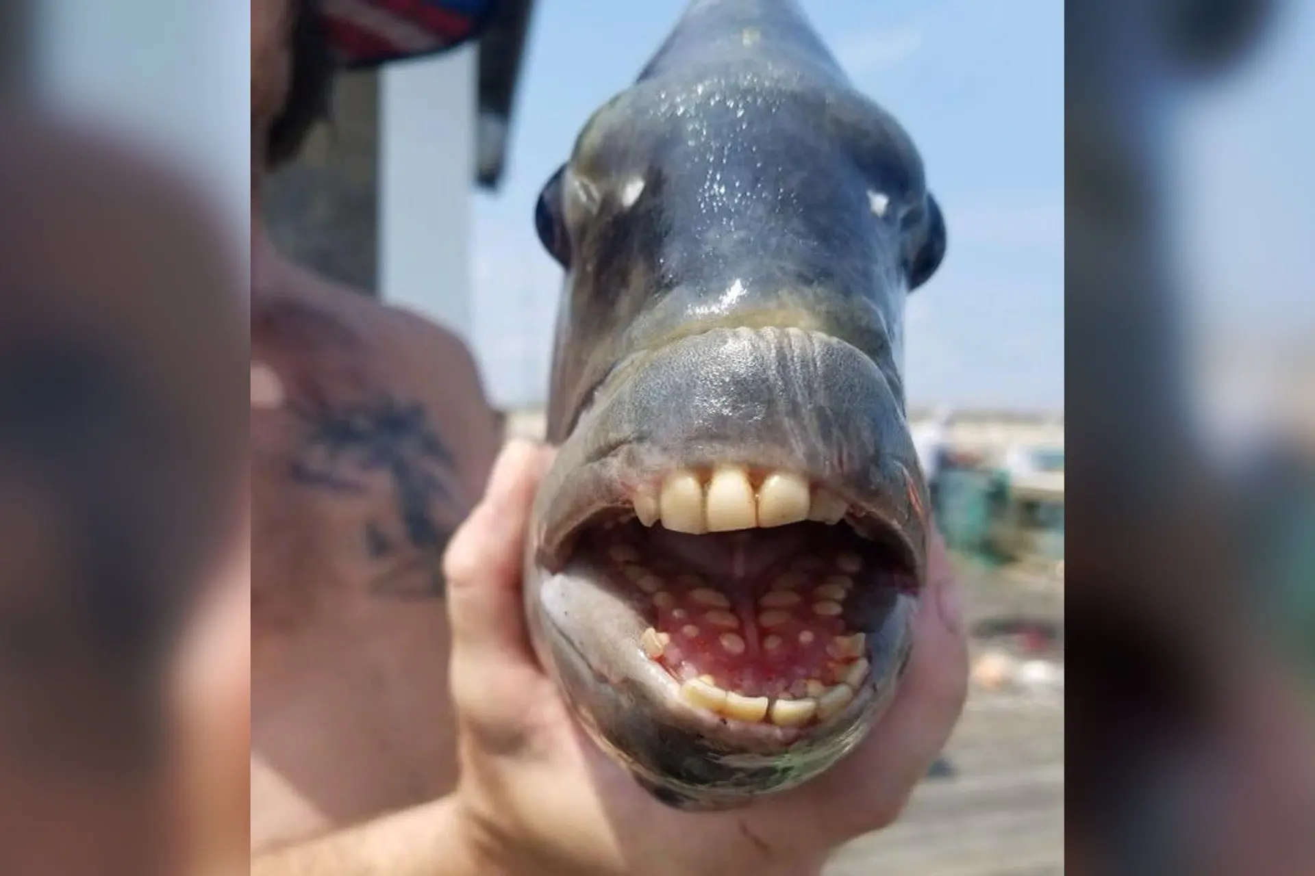 Это овцеголов. Необычная рыба, у которой полный рот зубов, по форме напоминающих зубы млекопитающих. Как вы думаете, почему у нее такое строение?