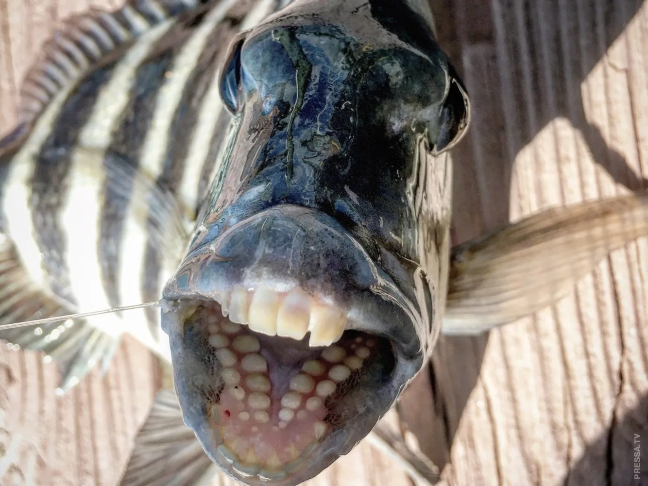 Эти зубы позволяют им питаться очень защищенными морскими животными. Основной их рацион - ракушки, крабы, моллюски, устрицы и креветки. Их зубы помогают раздавливать жесткие панцири своей добычи.