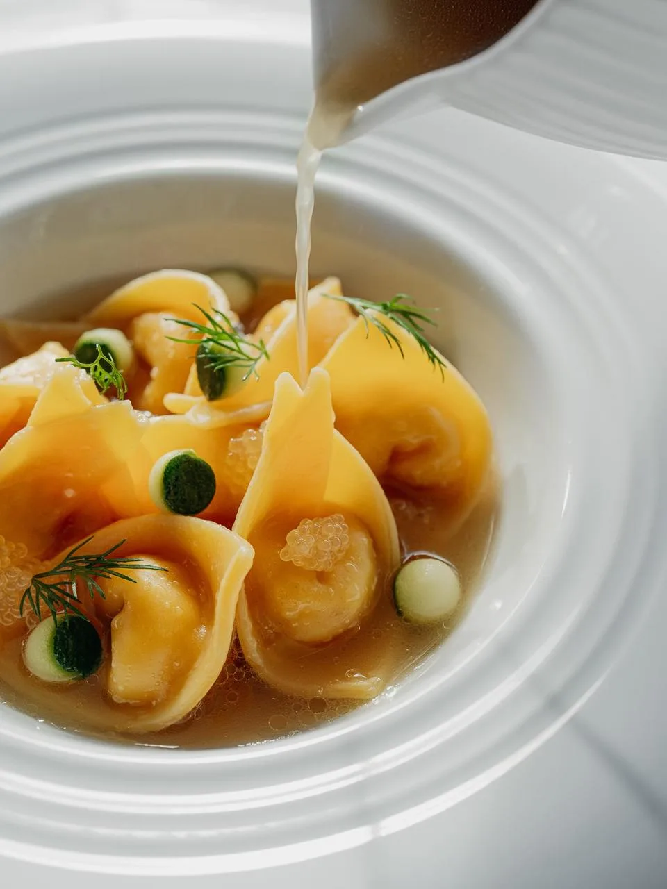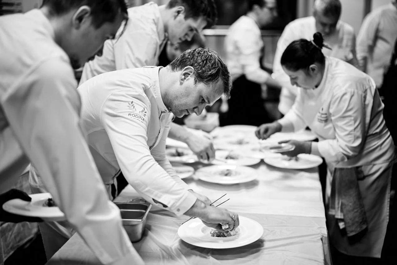 На площадке работали сильнейшие команды — Ararat Park Hyatt Moscow, Гранд Отель «Мойка 22», «Гельвеция» и другие. Разные школы, разный темперамент кухни, но всё это сложилось в одну линию: от лосося и оленины до перепёлки с трюфелем и морского ежа.