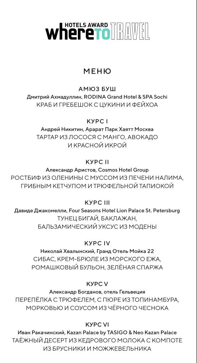 В Петербурге вчера прошёл ежегодный ужин отельеров WHERETOTRAVEL HOTELS AWARD. Дебют формата для отрасли: шефы вышли на одну кухню и показали, что гастрономия в отелях перестала прятаться за номерным фондом и уверенно заявила о себе.