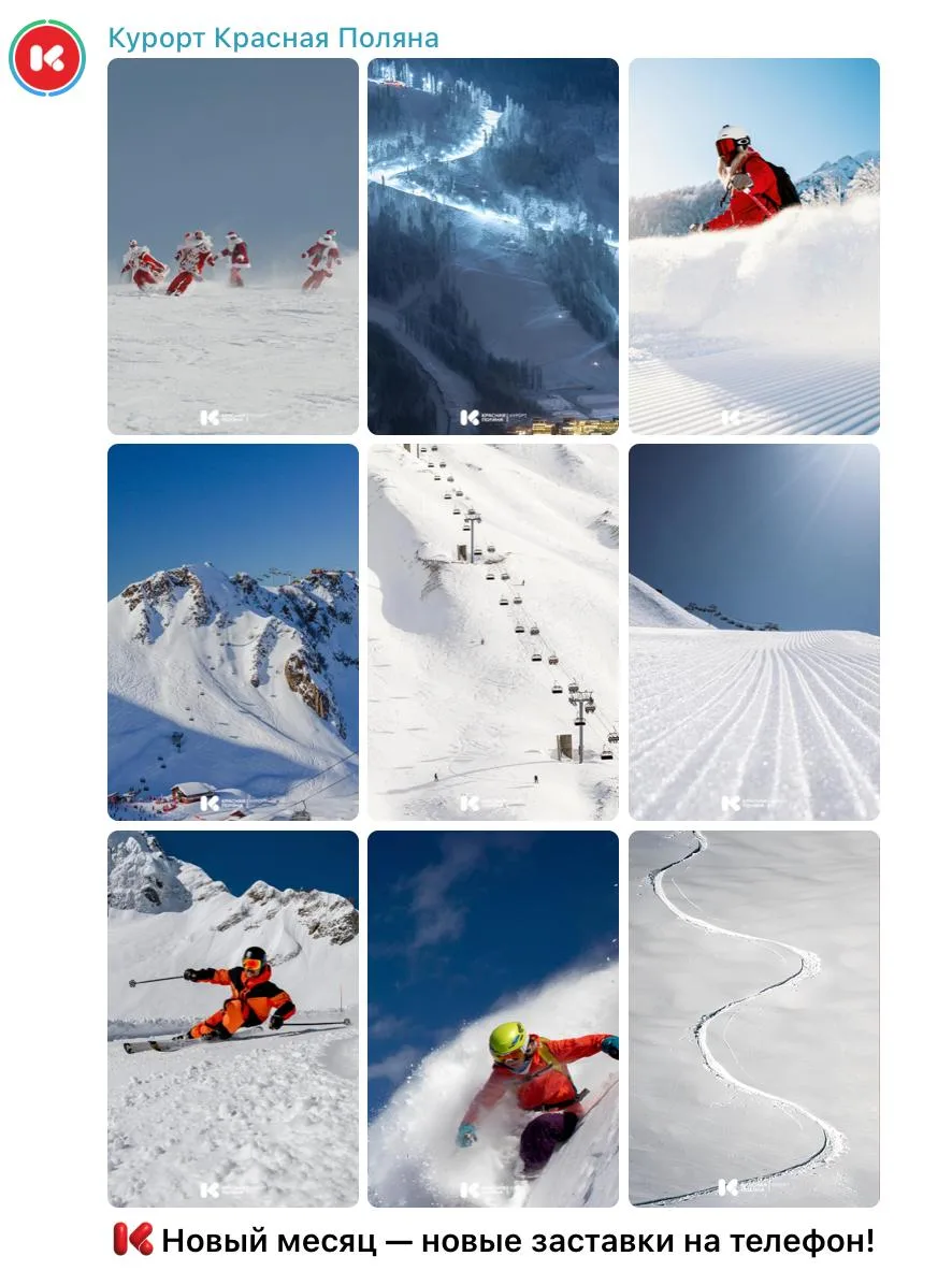 На Курорте Красная Поляна умеют работать с ожиданием так, как это делают сильные бренды. Не «ждите новостей», не «скоро всё начнётся», а маленький бытовой ритуал — обновить заставку на телефоне и тем самым переключить голову в зимний режим.