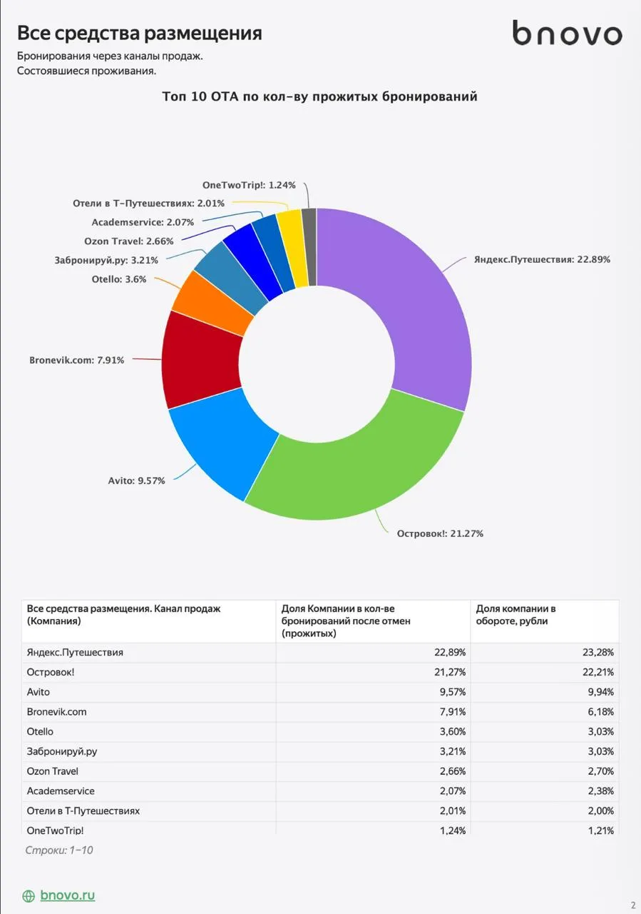 Коллеги, посмотрел свежую статистику BNOVO по OTA за 2025 год — презентация вроде из диаграмм, а выводы очень прикладные. Это не про «кто красивее на рынке», а про то, кто реально привозит прожитые бронирования в отели и другие форматы размещения.