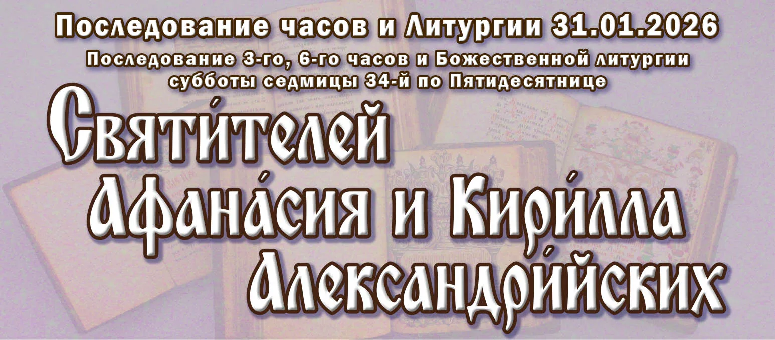 31.01.26 н.ст. / 18.01.26 ст.ст. Часы́ и Литурги́я суббо́ты 34-й седми́цы по Пятидеся́тнице. Свтт. Афана́сия и Кири́лла Александри́йских.
