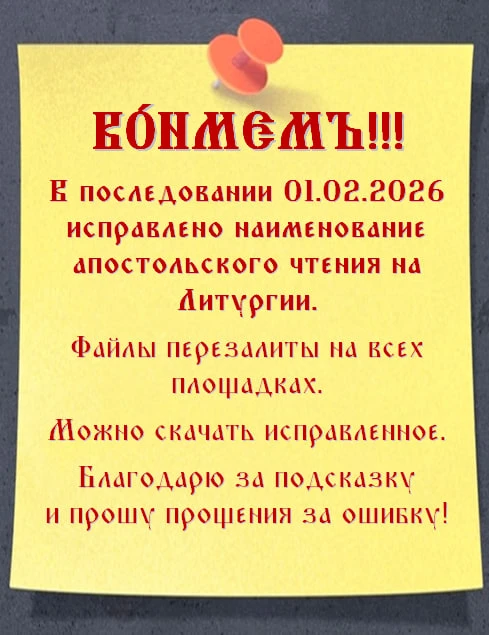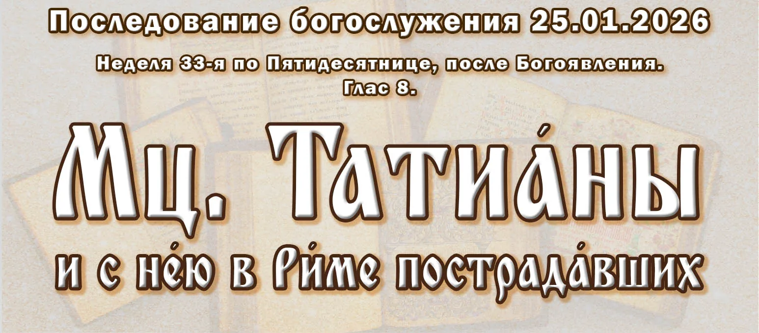 25.01.26 н.ст. / 12.01.26 ст.ст. Неде́ля 33-я по Пятидеся́тнице, по́сле Богоявле́ния. Мц. Татиа́ны и с не́ю в Ри́ме пострада́вших. Глас 8.