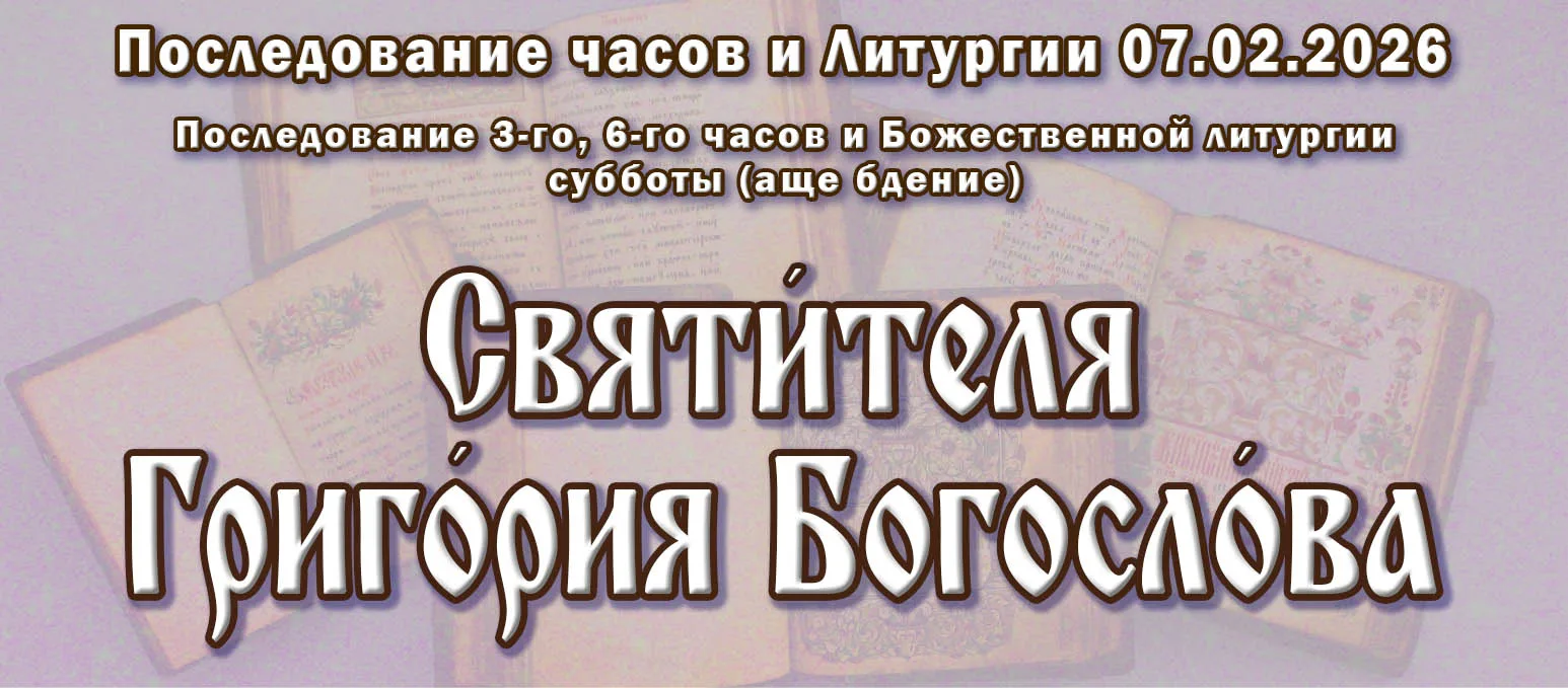 07.02.26 н.ст. / 25.01.26 ст.ст. Часы́ и Литурги́я суббо́ты. Свт. Григо́рия Богосло́ва архиепи́скопа Константино́польского (при бдении).