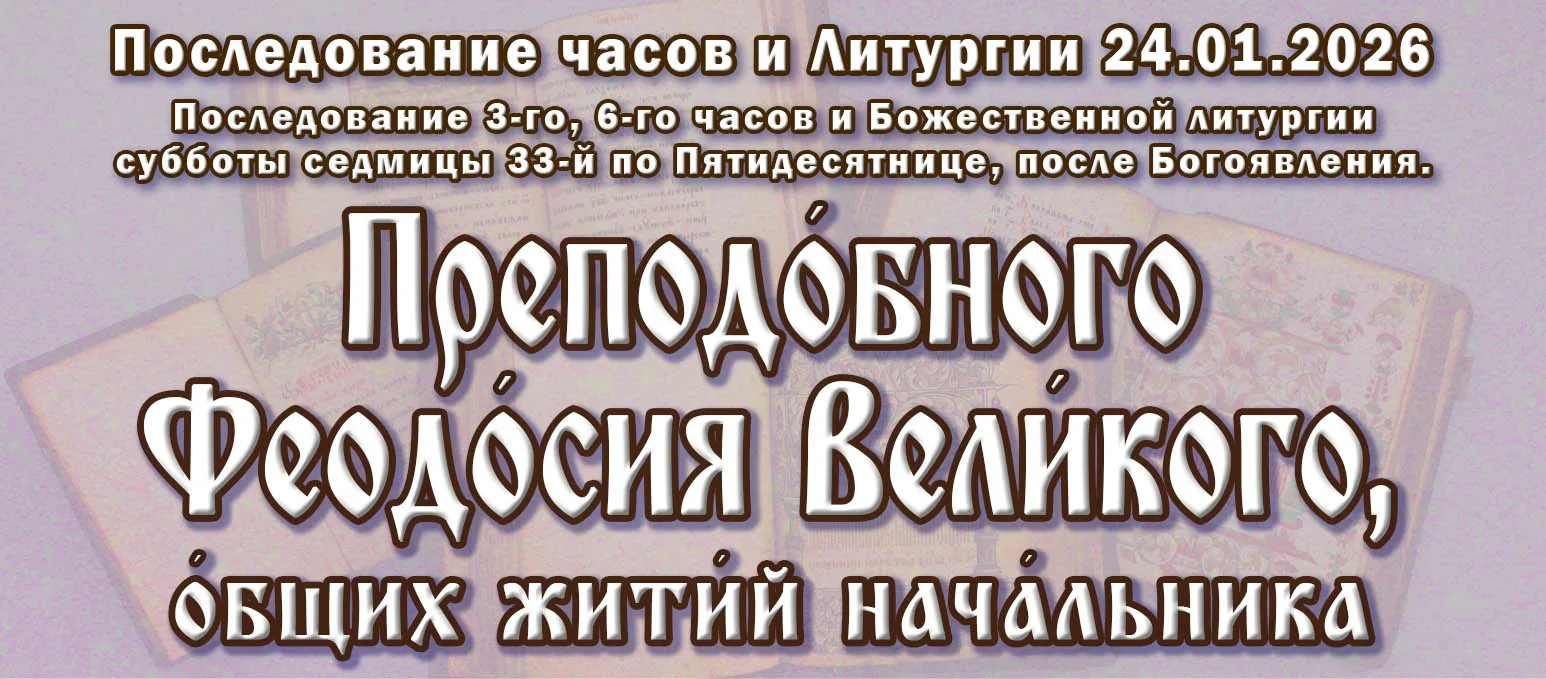 24.01.26 н.ст. / 11.01.26 ст.ст. Часы́ и Литурги́я суббо́ты 33-й седми́цы по Пятидеся́тнице, по́сле Богоявле́ния. Прп. Феодо́сия Вели́кого, о́бщих жити́й нача́льника.