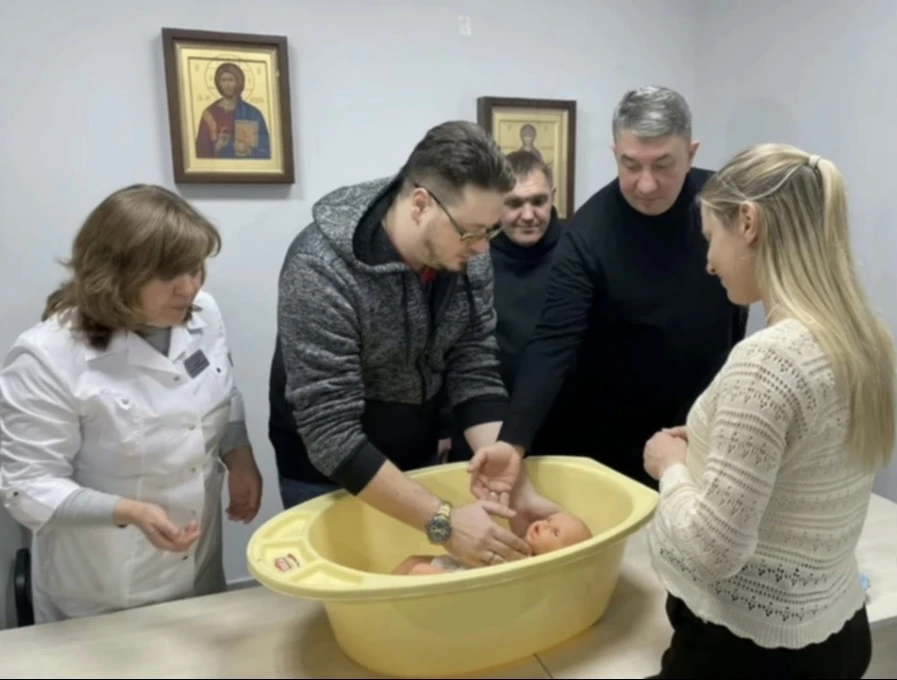Вот уже в который раз в поликлинике прошла ставшая традиционной «Школа молодого отца». Вместе с руководителем неонатологической службы Перинатального центра Алексеем Долотовым и священником Покровской епархии Аркадием Махсумовым будущие (и уже настоящие) папы учились правильно брать на руки и класть в кроватку малыша, готовить ванну и купать, пеленать – в общем, делать всё то, что должен уметь каждый уважающий себя мужчина.