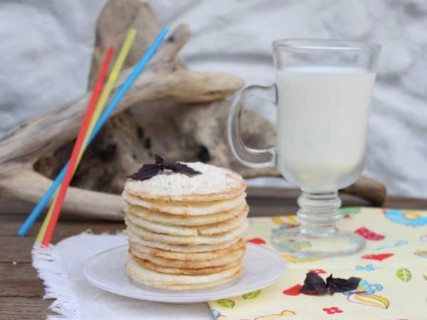 3. Лопаткой аккуратно переверните блин и жарьте с другой стороны ещё около 1 минуты. Готовый блин переложите на блюдо. Таким же образом испеките все остальные блины.