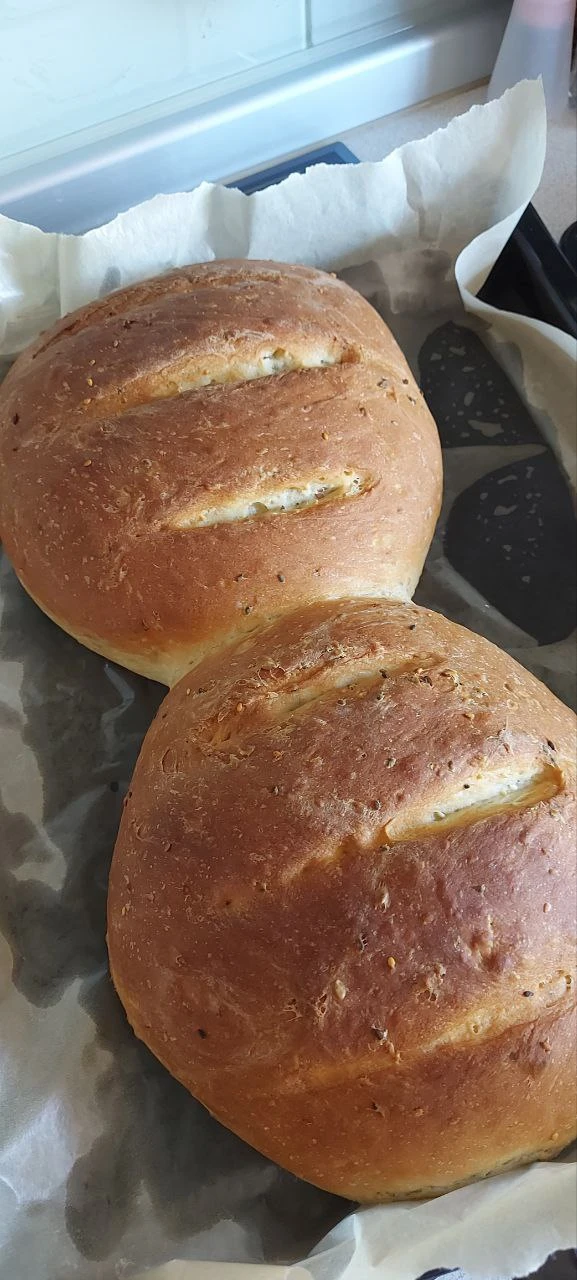 После выпечки достаём и остужаем на решётке, я люблю хлеб мягкий, поэтому накрываю крышкой от СВЧ👌