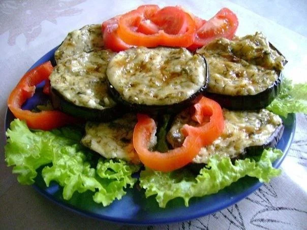 В глубокой сковороде обжариваем на растительном масле (подсолнечное смешиваю с оливковым) лук, морковь, затем добавляем порезанные кубиками баклажаны, кабачки, помидоры, добавляем соль, перец, специи по вкусу. Накрываем крышкой и тушим на среднем огне 15-20 минут, в конце добавляем порубленный чеснок и укроп.