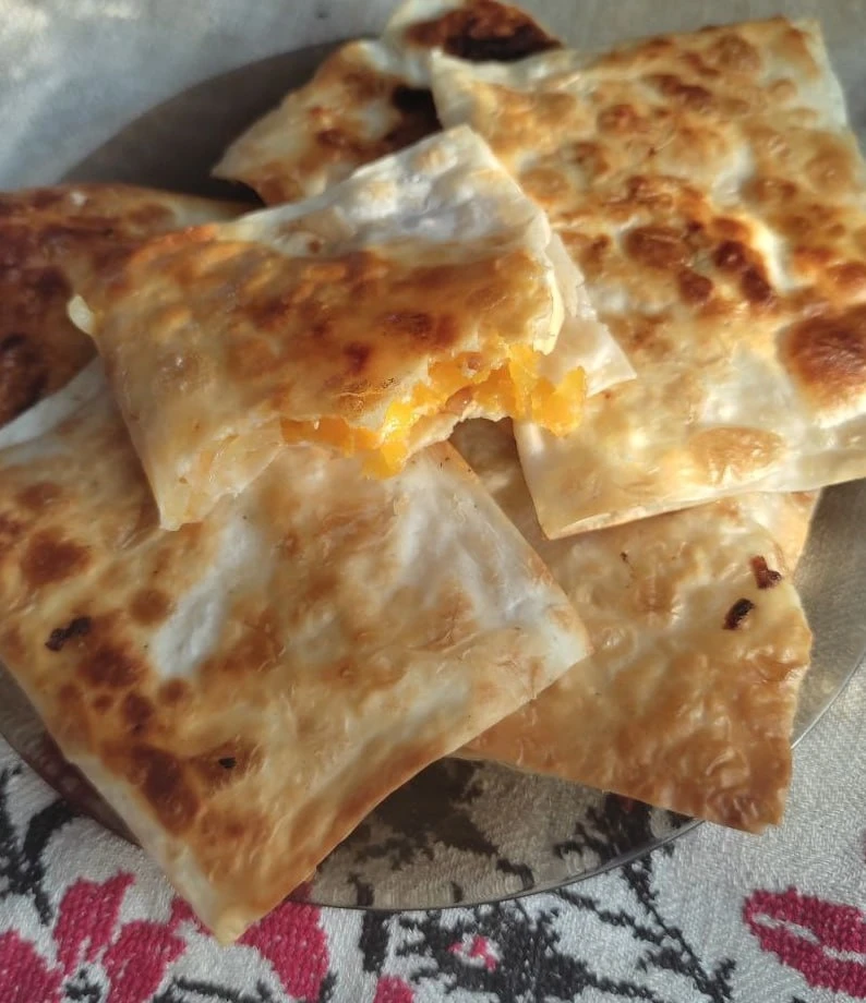 В лаваш кладу начинку, заворачиваю и обжариваю на растительном масле. Начинка всегда разная. Чаще в её качестве - остатки картофельного пюре + жареный лук или грибы, каша ячневая + тушеная морковь. Внуки любят сладкие хрустики. Для начинки мелко режу яблоко, банан, грушу и с сахаром обжариваю, тушу 5-7 минут, добавляю к ним разные специи: корицу, имбирь, или ваниль. Потом заварачиваю остывшую начинку в лаваш и обжариваю как блинчик на растительном масле.