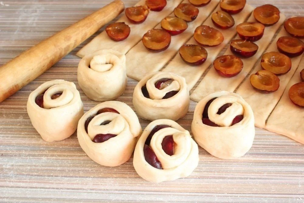 Два рулета поместить на противень, смазать с помощью кисточки, взбитым яйцом. Выпекать в духовке при t=180-200°С, примерно 20-25 минут. Смотреть по своей духовке, они у всех разные.