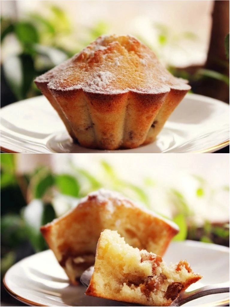5. Выпекать до золотистого цвета при t=170° 20-25 минут. Готовность проверить зубочисткой. Кексы остудить, вынуть из формы, покрыть глазурью или посыпать сахарной пудрой.