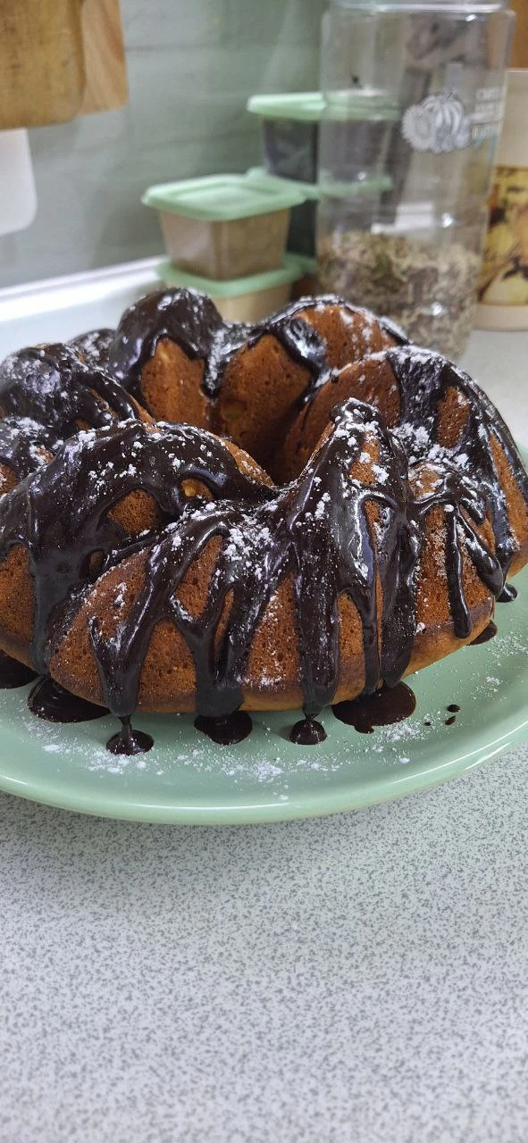 Для глазури смешать все ингредиенты и довести до кипения на медленном огне. Полить горячей глазурью слегка остывший кекс.
