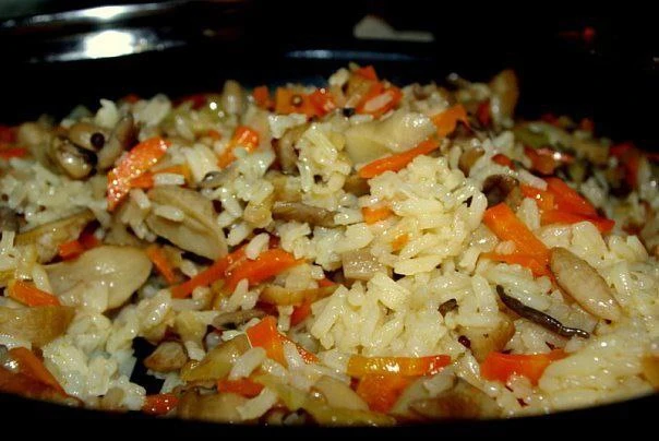 Шампиньоны фаршированные овощами с рисом