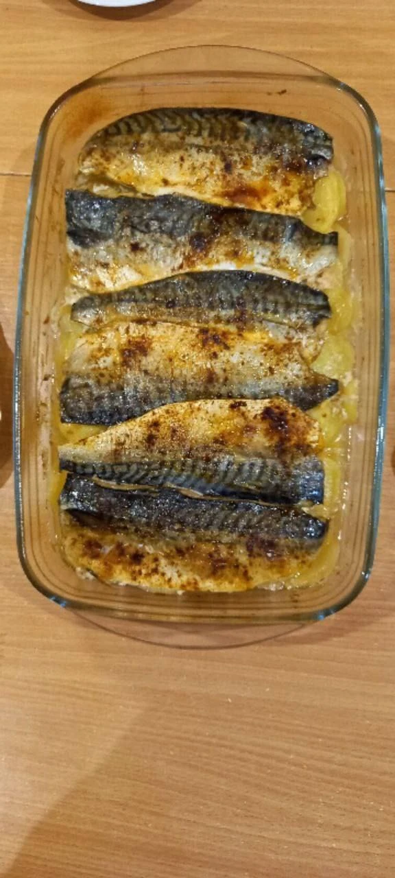 На картофель выложить филе скумбрии.