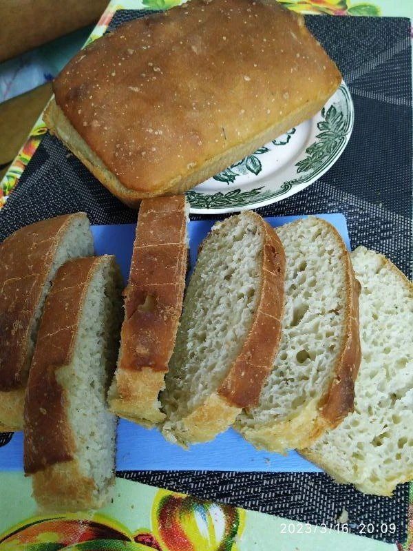 Традиционно для хлеба делают опару, замешивают, выстаивают и только потом выпекают. Для заливного хлеба ничего этого не нужно. Его можно приготовить и даже не испачкать руки мукой. Получается хлеб очень вкусным с тонкой хрустящей корочкой и мягким пористым мякишем. Вес готовой буханки ~550 гр +/-. Форму можно брать любую, пробовала в разных.
