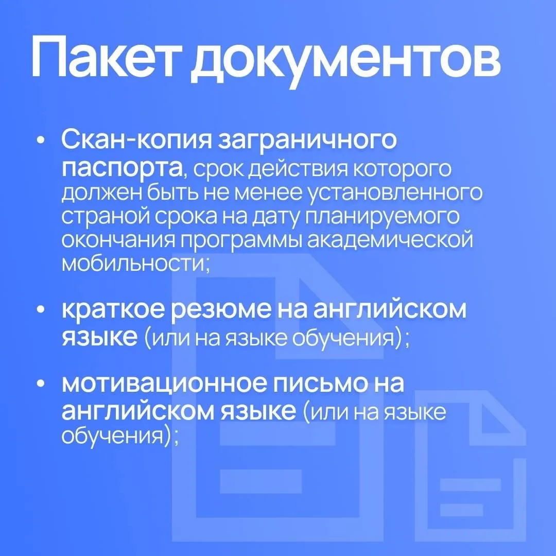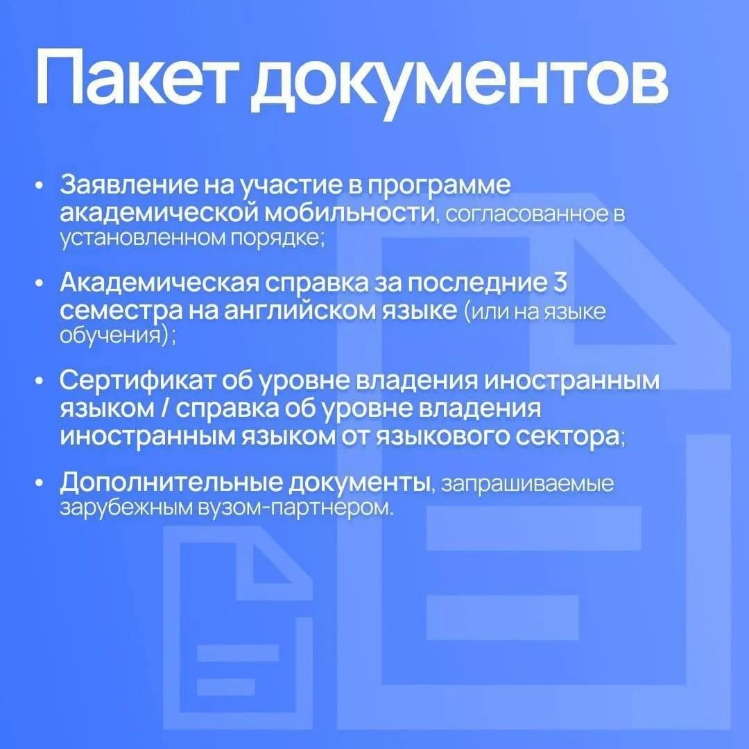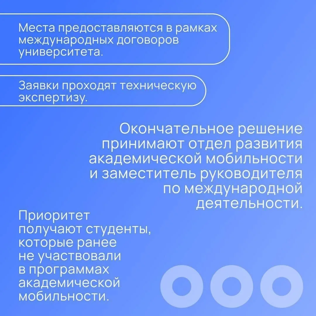 По всем вопросам необходимо обращаться к заместителю декана по международной деятельности факультета или в отдел по развитию академической мобильности:
