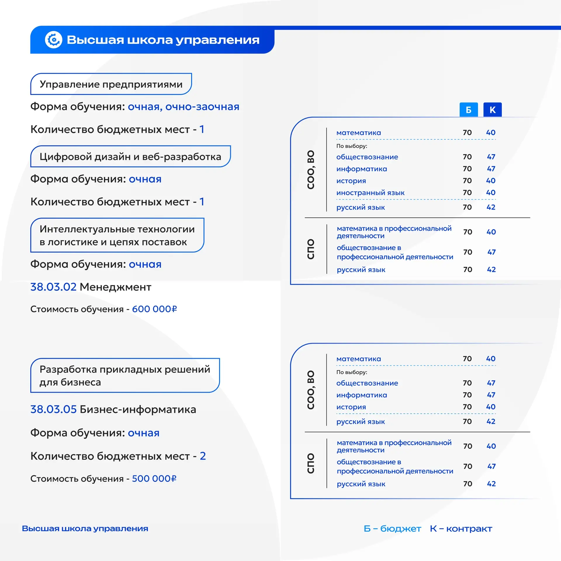 Приемная комиссия Высшей школы управления: