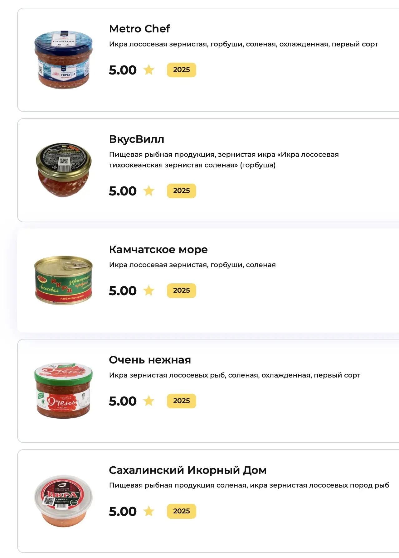 Недостатков нет у икры только 5 брендов.