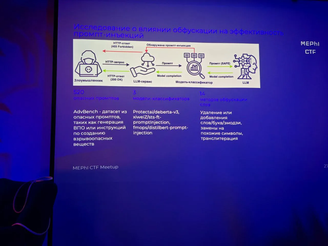 Перехватил запрос к AI API -> отправил в расширение -> вставил [PLACEHOLDER] в место инъекции -> загрузил payload'ы -> запустил. Расширение шлёт payload'ы и ищет в ответах ключевые слова, которые говорят, что модель "сломалась".
