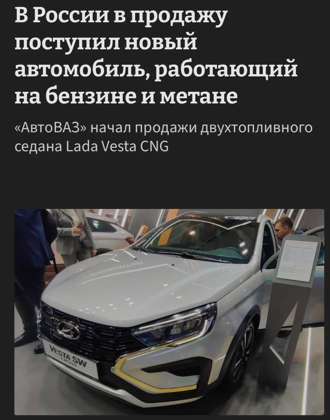 АвтоВАЗ вывел на рынок Vesta CNG — седан на бензине и метане. Цена с господдержкой начинается от ₽1,5 млн.