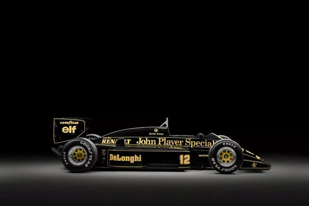 Это та самая чёрно-золотая машина в ливрее John Player Special. Под капотом турбированный 1,5-литровый V6: около 900 сил в гоночном режиме и до 1200 сил в квалификации.