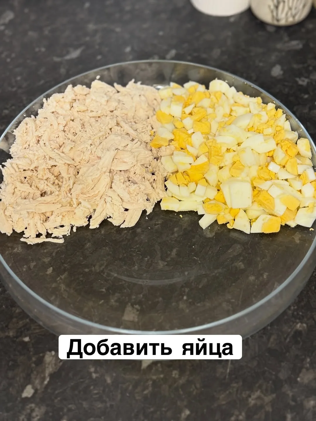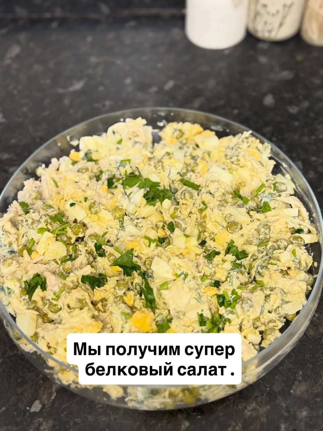 Это салат супер белковый ,который подходит на все приемы пищи .