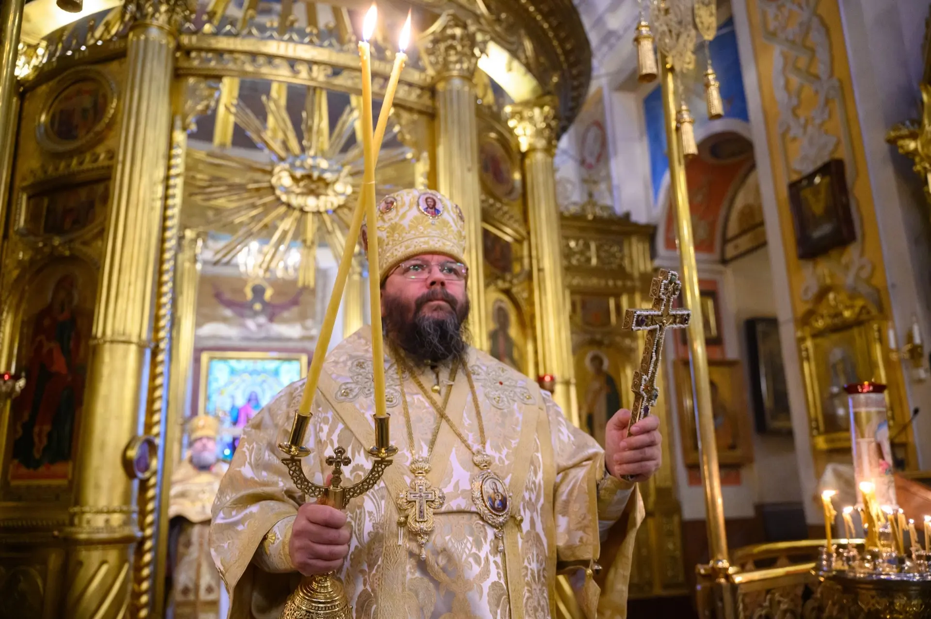 Дорогой отец Прохор, отец благочинный, дорогие отцы, братья и сестры! Наверное, за один год невозможно так настроить жизнь, чтобы она сразу изменилась к лучшему. Я пришёл на труды своих предшественников, а, оказывается, вы жили хорошо, просто не пели. Вы поняли, что вы хорошо живёте и запели. Поэтому здесь надо вспомнить всех предшественников: и Владыку Евсевия, и Владыку Тихона, и Владыку Арсения. Они создавали эту основу, а я пришёл уже на готовое и лишь вселил в вас необходимое чувство радости, что вы вообще благоденствуете. Вот я думаю, что за этот год мы, благодаря пению, смогли сблизиться друг с другом. Многие отцы, которые служат в отдалённых деревеньках, которые редко встречаются между собой, здесь во время спевок, во время наших миссионерских путешествий в Санкт-Петербург, в Волгоград на записи, на съёмки, в неформальной обстановке смогли пообщаться между собой, поделиться скорбями, радостями, кто что переживает. И, наверное, как говорят, «песня и строить, и жить помогает», действительно так оно и есть. И когда пообщались отцы между собой, испытали такую радость, теперь ждут нового проекта, когда мы будем следующую песню записывать. Поэтому, я думаю, мы обязательно будем продолжать, потому что это наше начинание отметил и Святейший Патриарх, ему очень понравилась инициатива, она очень патриотичная – это формат проповеди, когда священники поют, это единый дух с народом. Тем более, когда сейчас мы переживаем время Специальной военной операции, этот дух единения обязательно должен исходить от нас – от пастырей, от духовенства, потому что сейчас народу это необходимо. Разобщённость – она, как я уже говорил ранее, сеется в мире дьяволом и исповедуется, к сожалению, многими главами государств, которые ведут свои народы к войнам, к распрям. К сожалению, этих народов очень немало. И Россия нынче является тем оплотом единства, вокруг которого и строится, скажем так, новый миропорядок, благодаря нашему Президенту – многополярный мир, как об этом не раз говорили с разных политических платформ и площадок...
