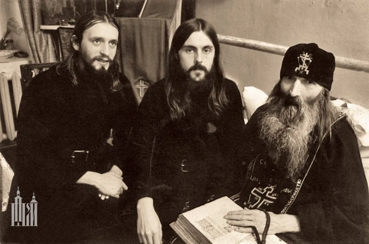📸 1. Лаврские монахи: о. Кирилл (в центре), справа - архимандрит Тихон (Агриков), слева - отец Адриан - 60-е гг. ХХ в.