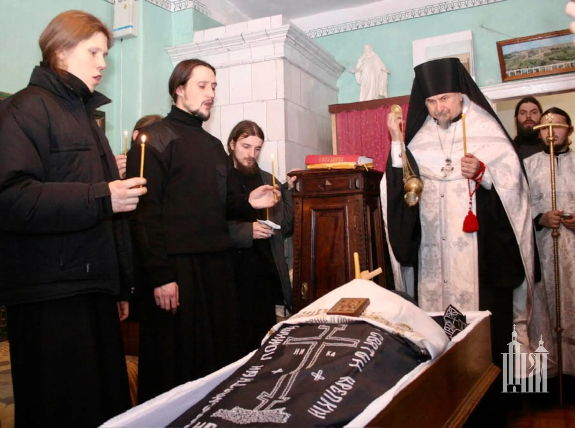 «В феврале пришла в монастырь телеграмма о его кончине. В пещерах еще в тридцатые годы была похоронена его мать Елизавета, там и у него приготовлено было место. Но машины в то время монастырь не имел, да и дороги в феврале были наглухо заметены метелями. Никто из монастыря поехать за ним не смог. Похоронили его на местном кладбище рядом с храмом, в котором он служил...»