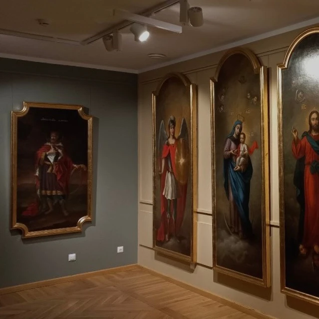 Посетители увидят 17 образов из иконостаса деревянной Троицкой соборной церкви. Под её куполом торжественно отмечали победу русского войска в Полтавской битве, заключение Ништадтского мира и присвоение Петру I титула императора. Ценнейшие памятники русской живописи середины XVIII века создал один из крупнейших русских живописцев того времени Иван Вишняков.