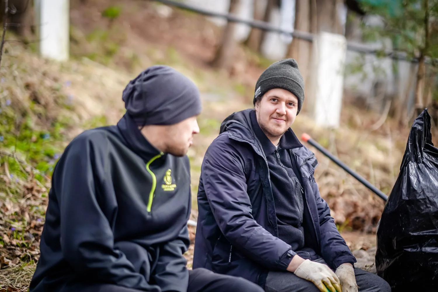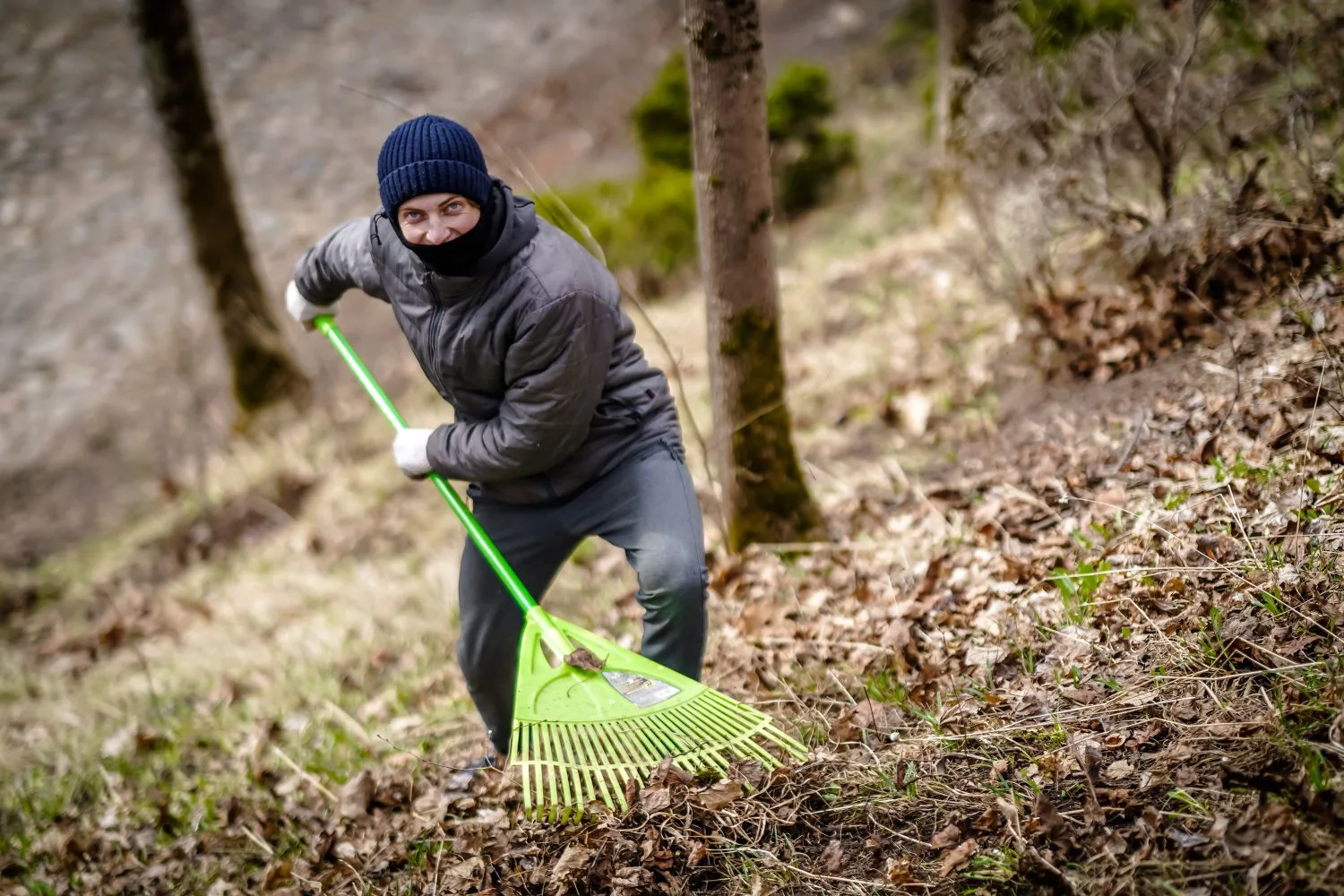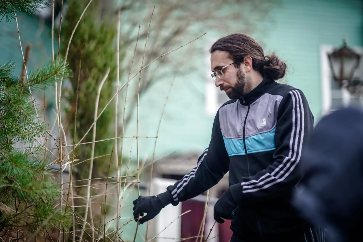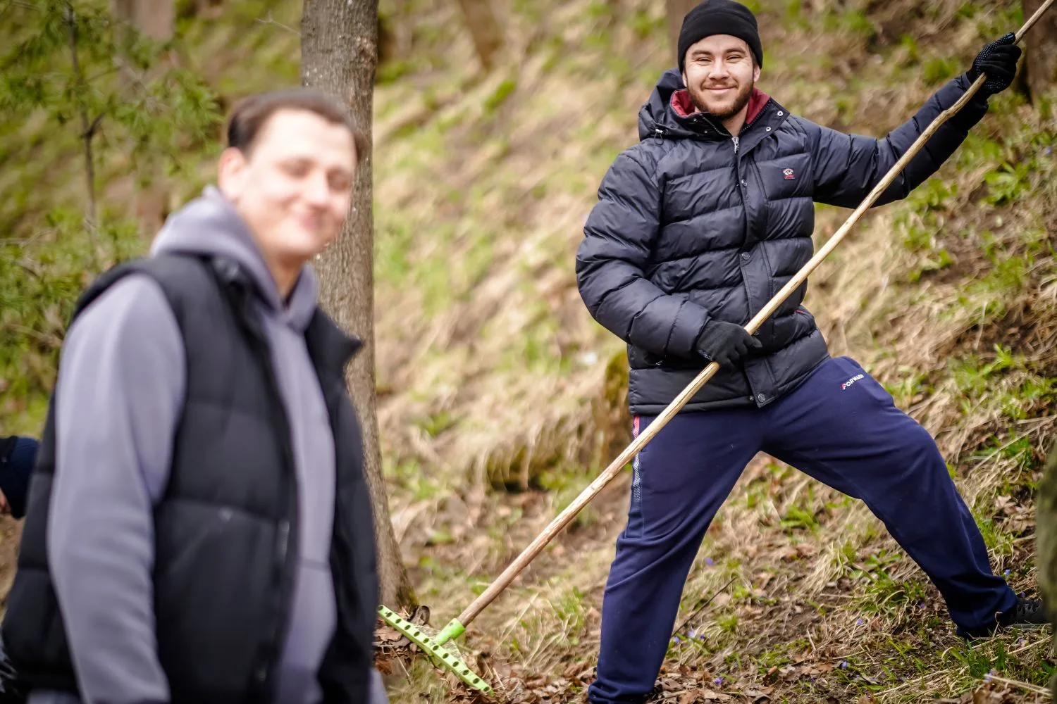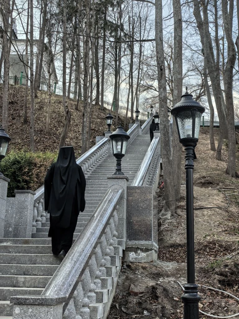 Начало подготовки территории Псково-Печерской обители к светлому празднику Пасхи кропотливыми трудами учащихся духовной семинарии