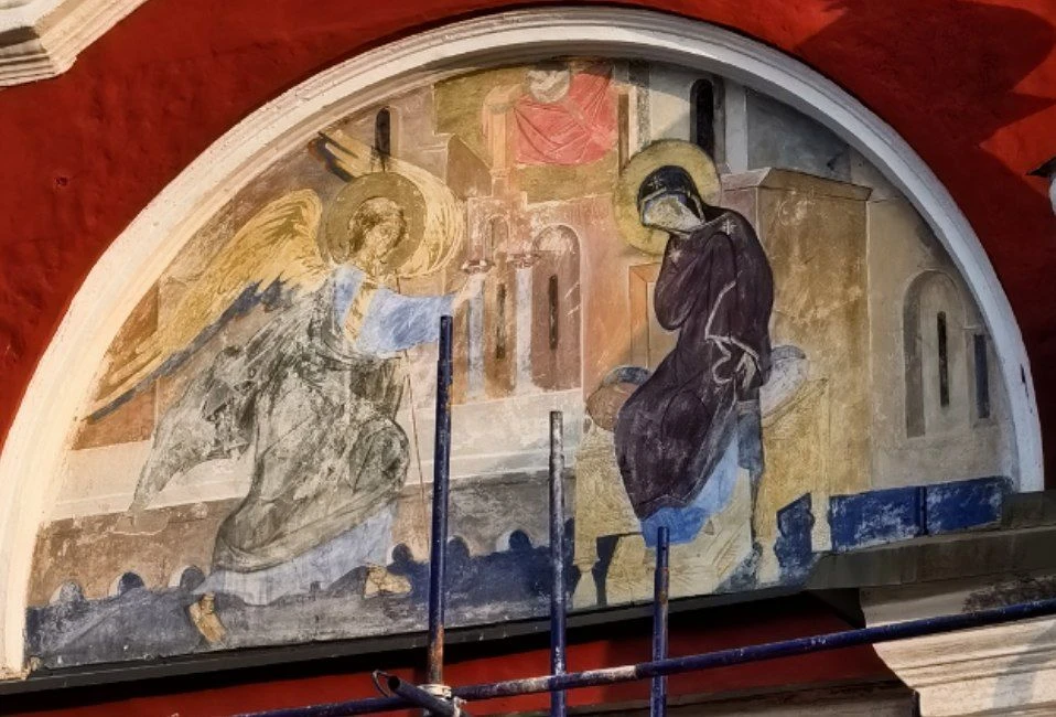 «Интересна Благовещенская церковь 1541 г., сохранившая своё восьмискатное покрытие, а сохранила она его, как оказалось после исследования, только потому, что в барабане купола в древности помещалась малая, очень интересная по пропорциям и деталям церковь Бориса и Глеба, замурованный вход в которую я обнаружил, осматривая чердаки».