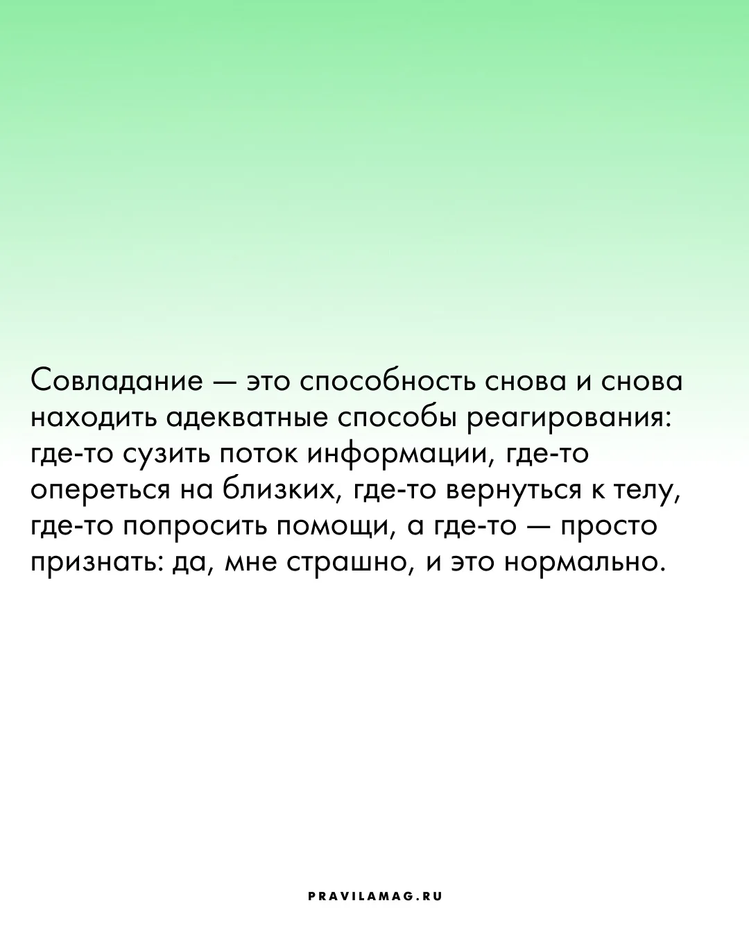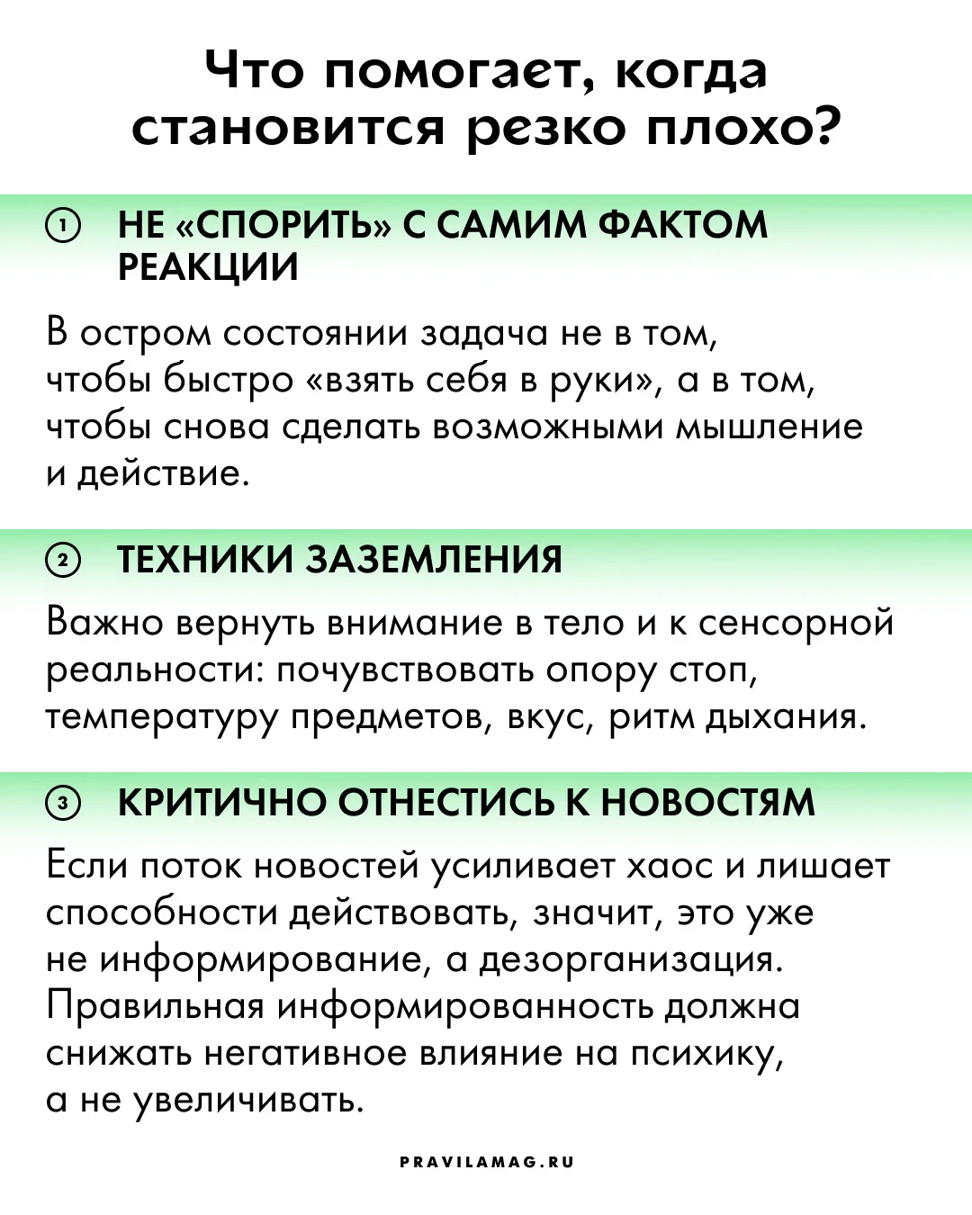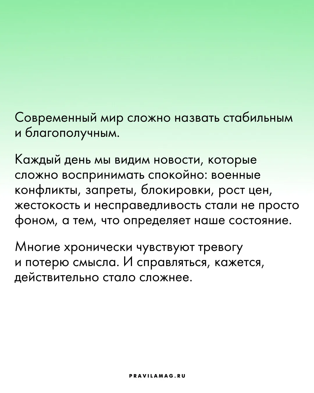 Когда планы рушатся, важнее становится уже не план, а точка опоры. В карточках — советы психолога о том, как ее найти, чтобы пережить турбулентность с минимальными потерями.