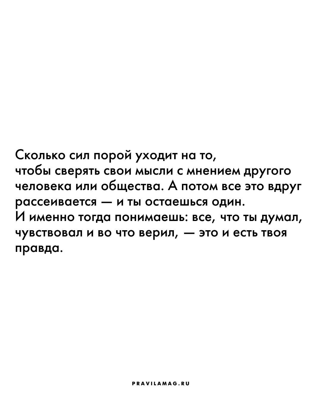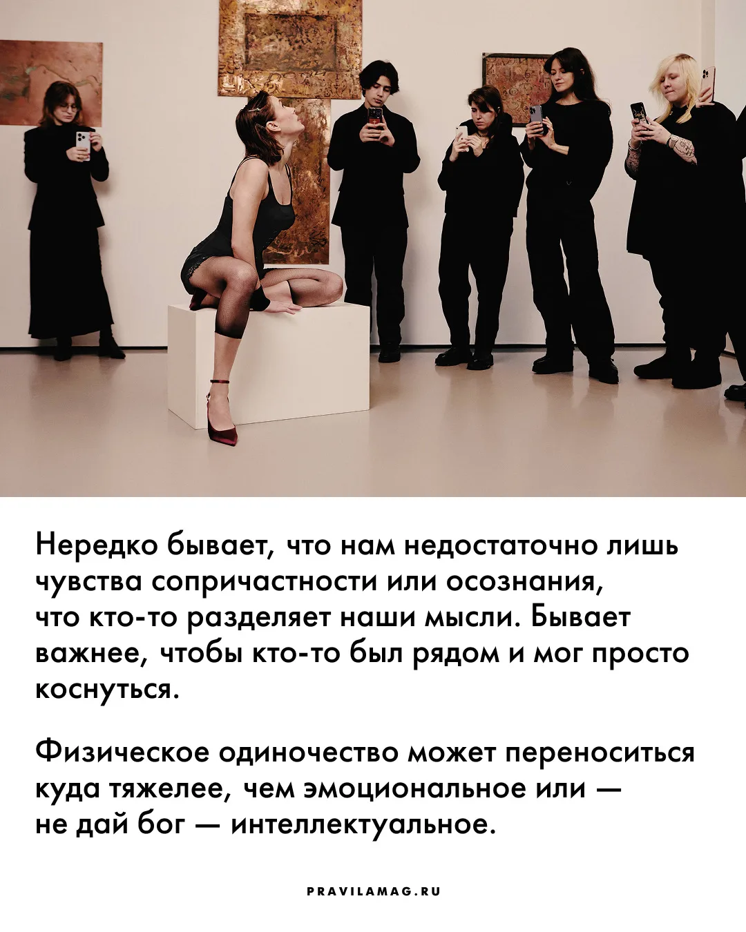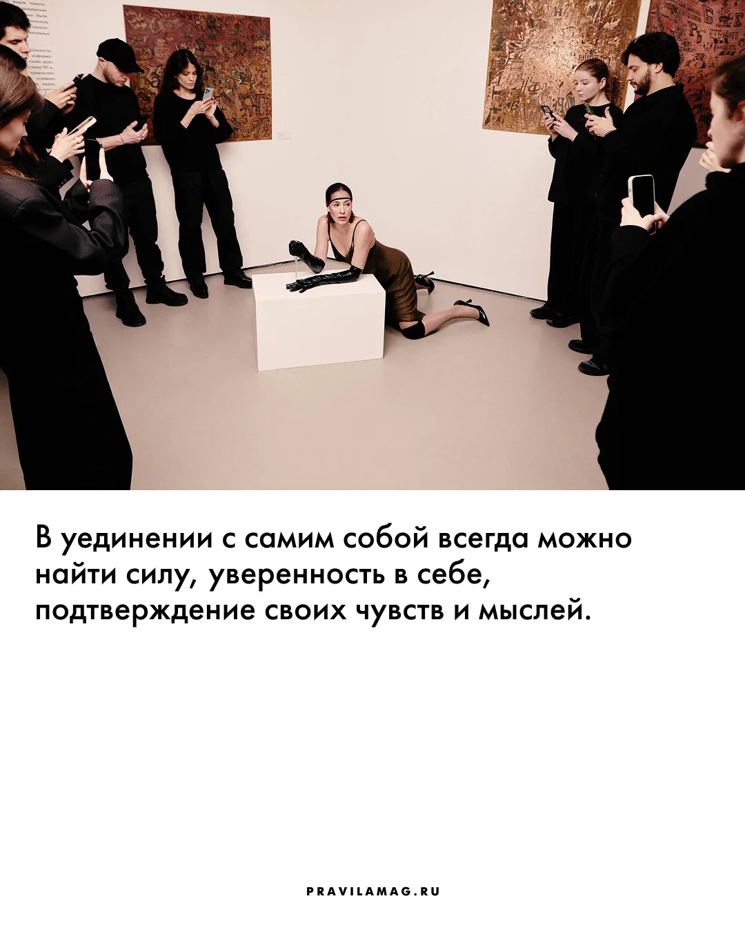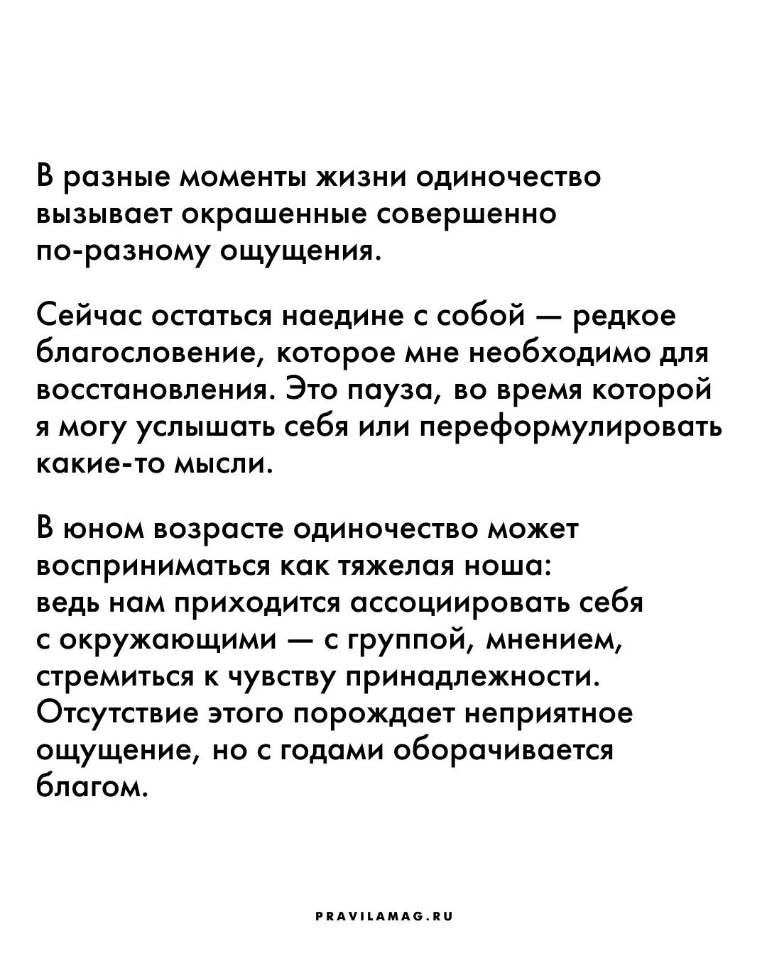 Публикуем ее размышления о силе толпы, уединении и тех состояниях, в которых человек остается наедине с собой.