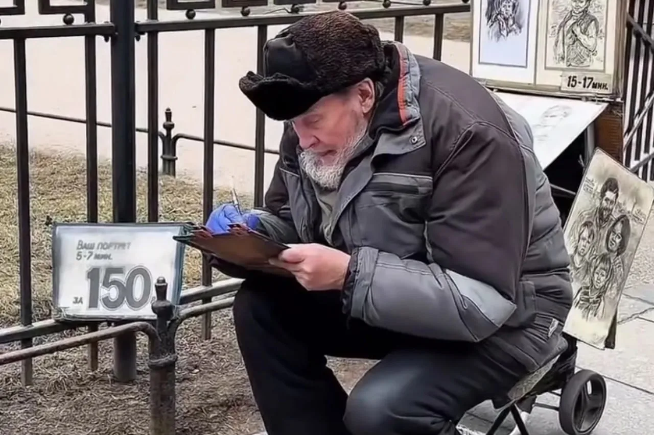 К 73-летнему уличному художнику, который работает напротив Казанского собора, стали выстраиваться очереди после того, как ролики о нем набрали популярность в Instagram* и TikTok.
